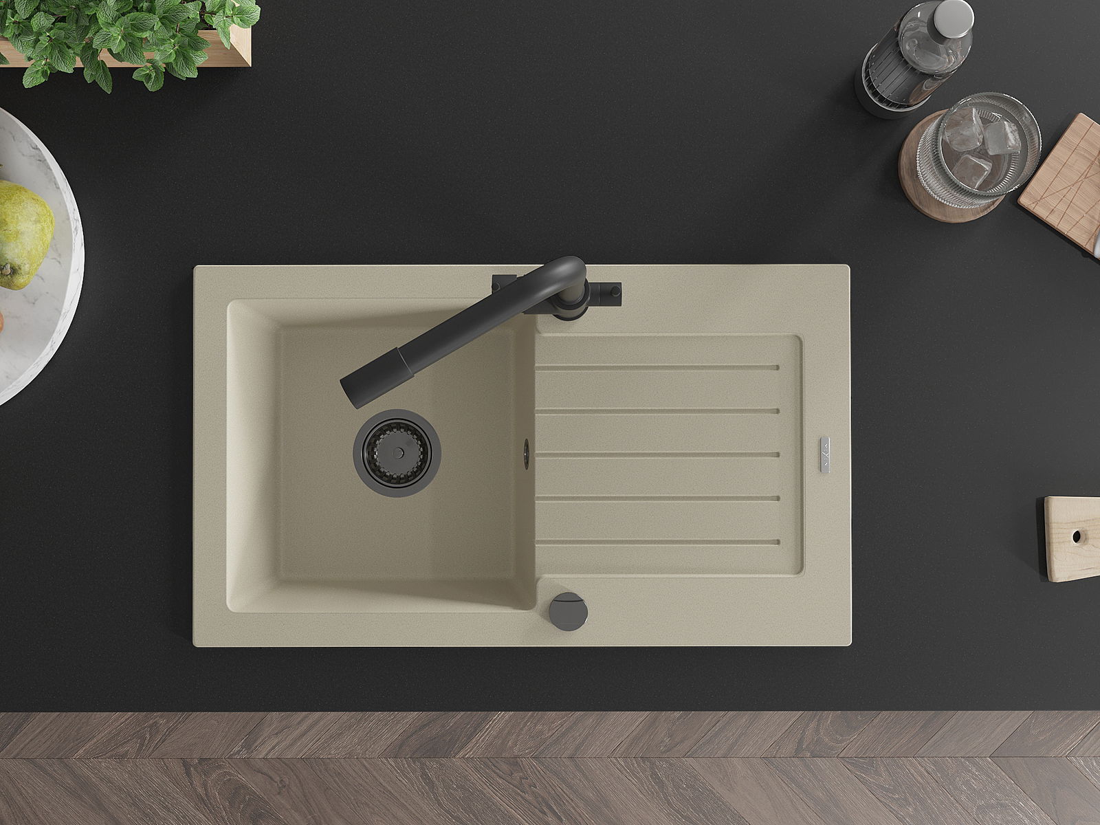 Mexen Pablo granitový drez 1-komorový s odkvapkávačom a kuchynskou batériou Duero, béžový - 6510-69-671600-70