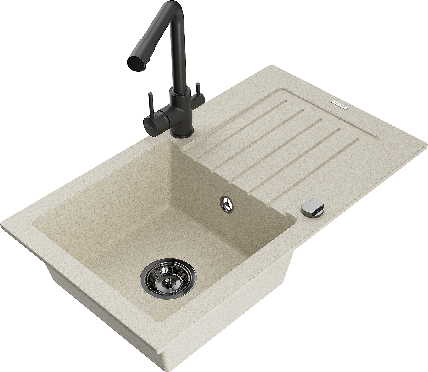 Povrch kuchynského drezu je odolný voči škvrnám a zafarbeniu, vďaka čomu sa ľahko udržiava a zachováva svoju farbu počas dlhého obdobia používania. Estetický a praktický doplnok pre každú kuchyňu.