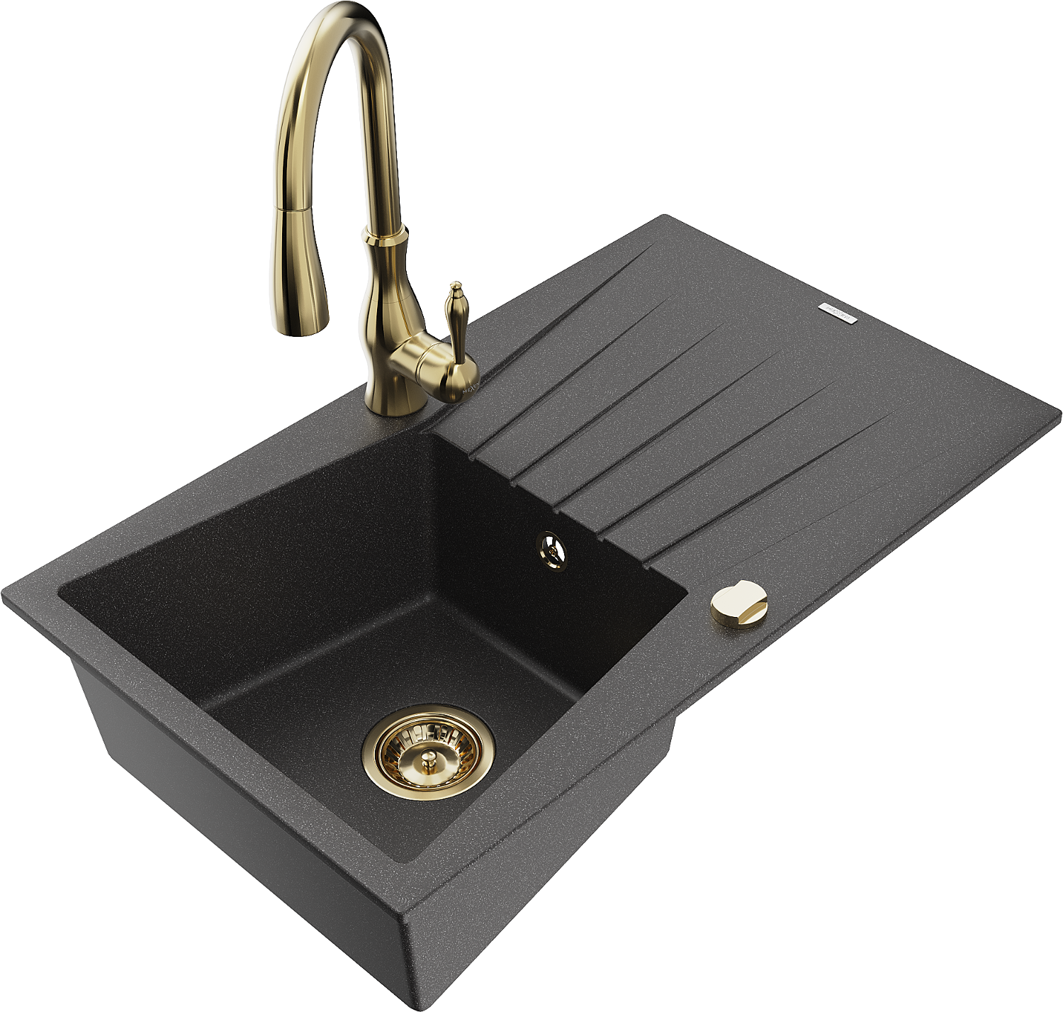 Mexen Cesar žulový drez s jednou komorou s odkvapkávačom a kuchynskou batériou Savita, čierny škvrnitý - 6514-76-672601-50