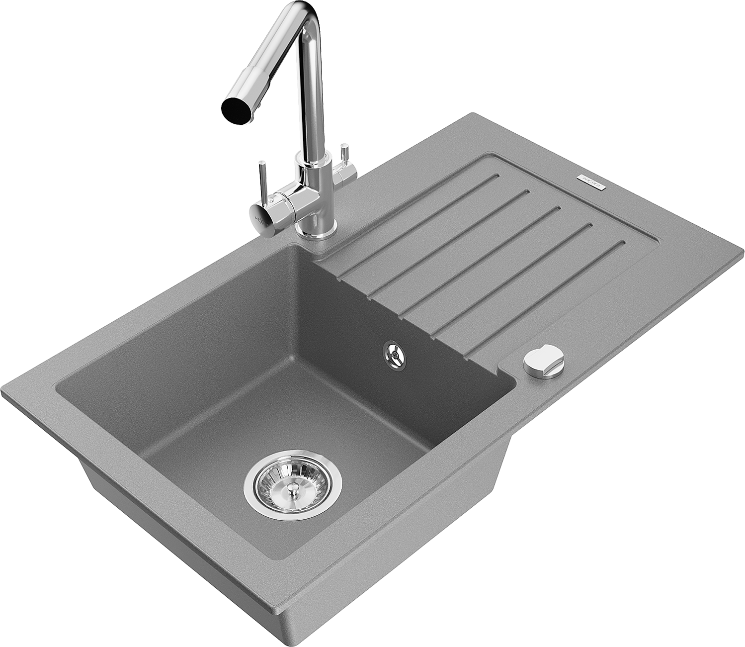 Mexen Pablo žulový drez s 1 miskou a odkvapkávačom a kuchynskou batériou Duero, sivý - 6510-71-671600-00