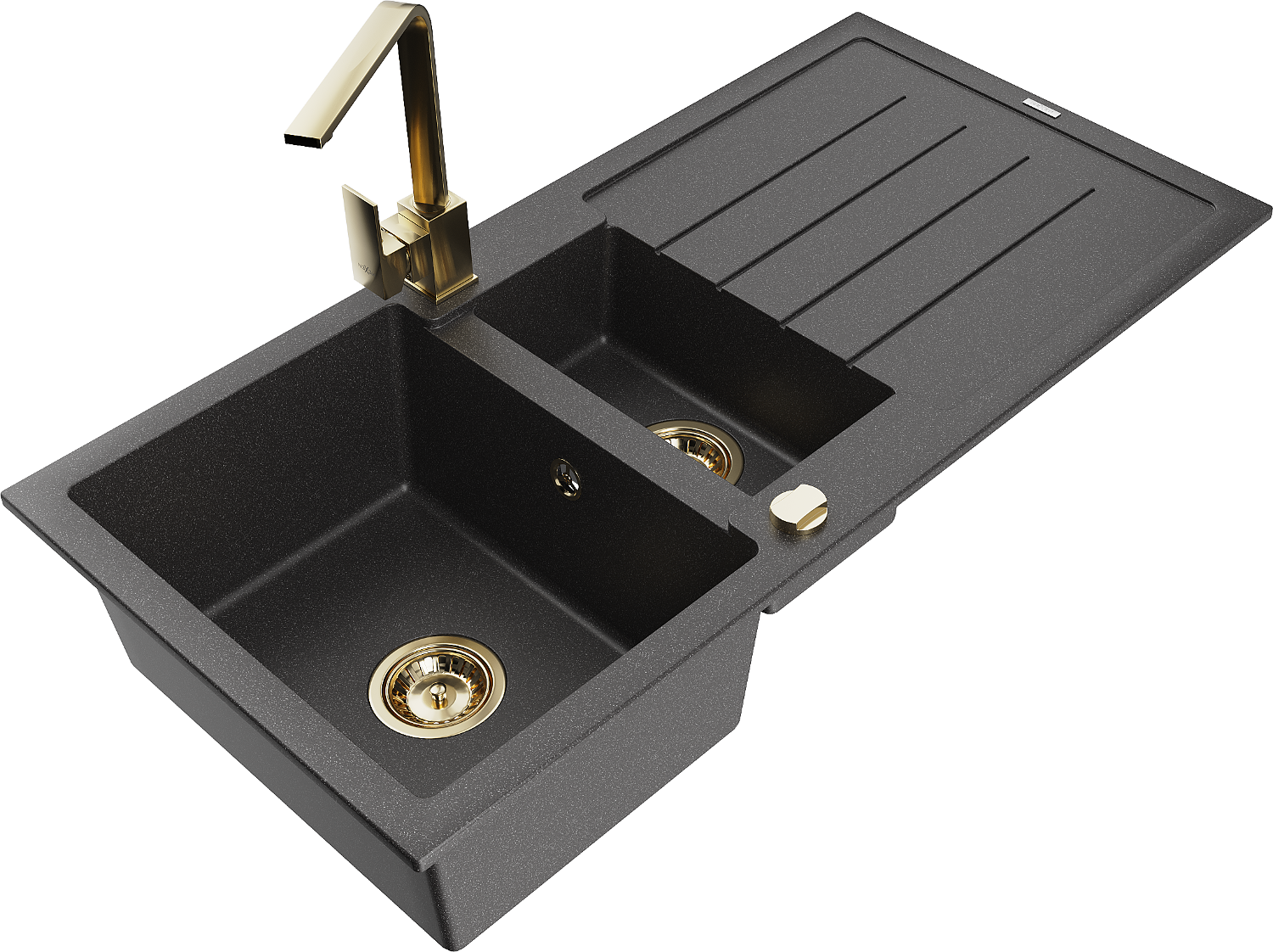 Povrch kuchynského drezu je odolný voči škvrnám a zafarbeniu, vďaka čomu sa ľahko udržiava a zachováva svoju farbu počas dlhého obdobia používania. Estetický a praktický doplnok pre každú kuchyňu.