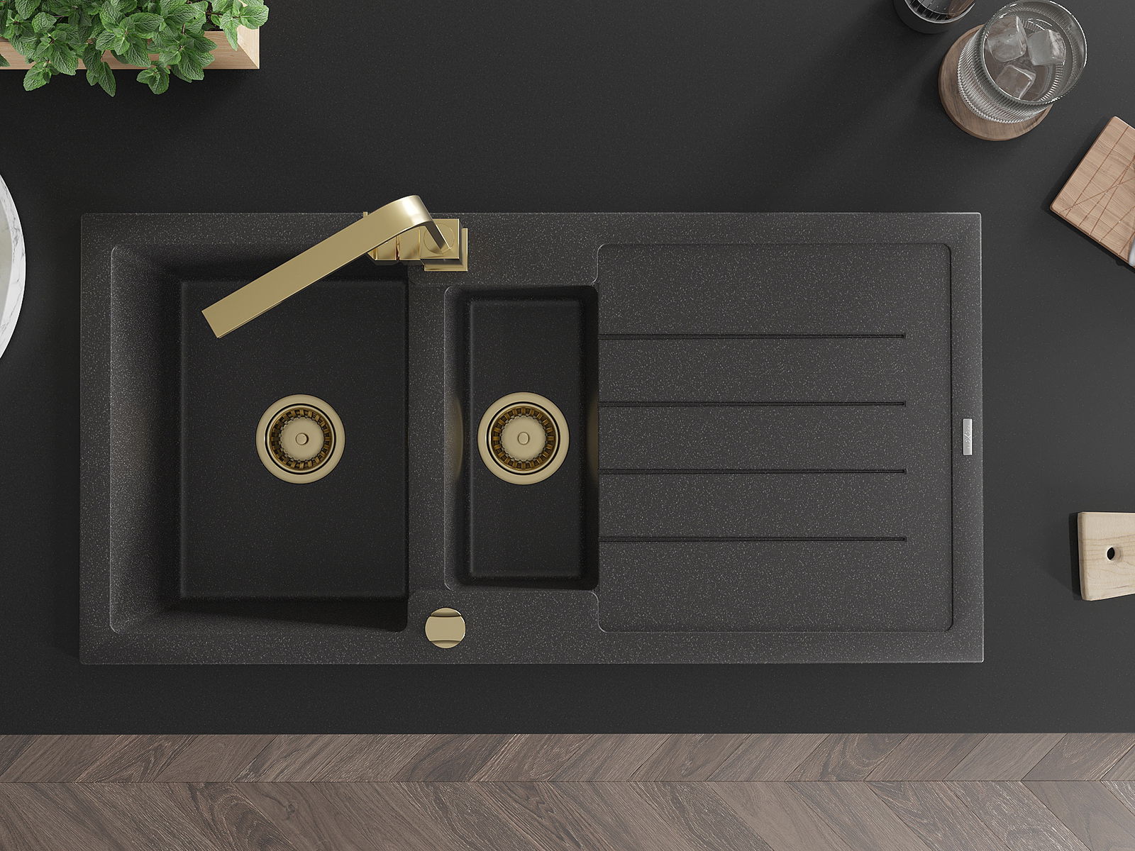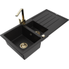 Mexen Andres granitový drez s 1,5-miskou s odkvapkávačom a kuchynskou batériou Rita, čierny bodkovaný - 6515-76-670300-50