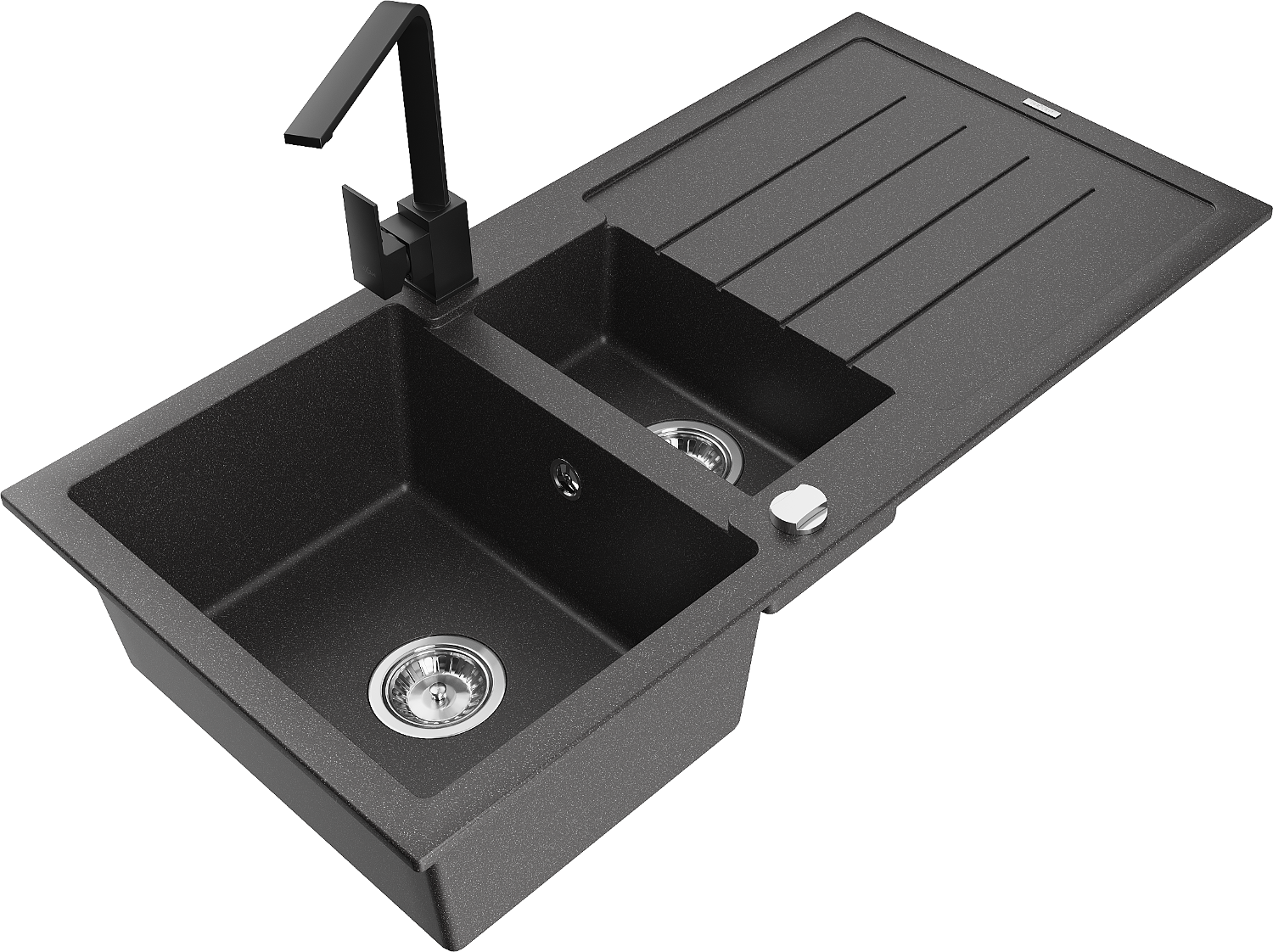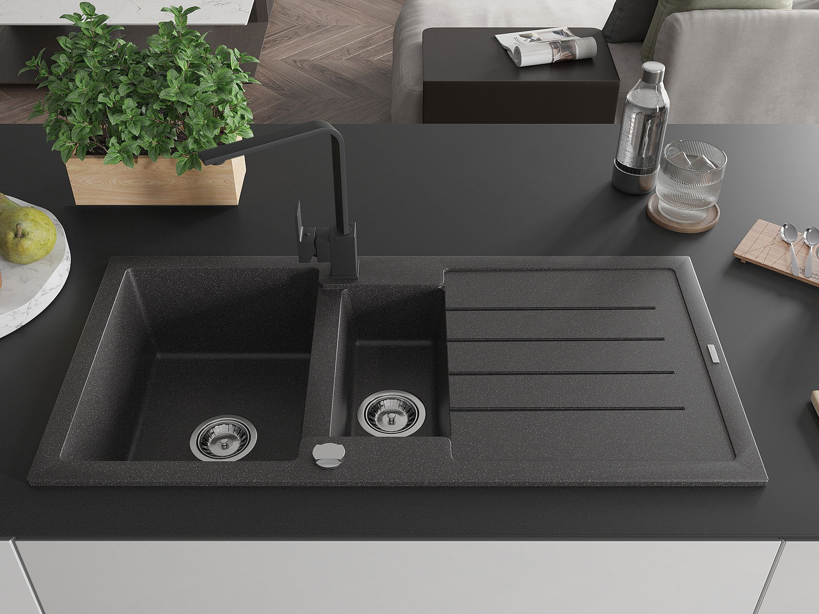 Povrch kuchynského drezu je odolný voči škvrnám a zafarbeniu, vďaka čomu sa ľahko udržiava a zachováva svoju farbu počas dlhého obdobia používania. Estetický a praktický doplnok pre každú kuchyňu.