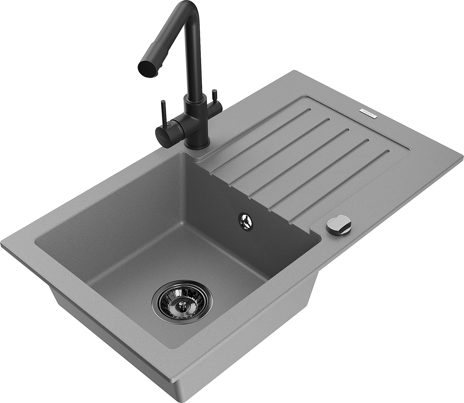 Mexen Pablo žulový kuchynský drez s 1 komorou a odkvapkávačom s kuchynskou batériou Duero, sivý - 6510-71-671600-70-B
