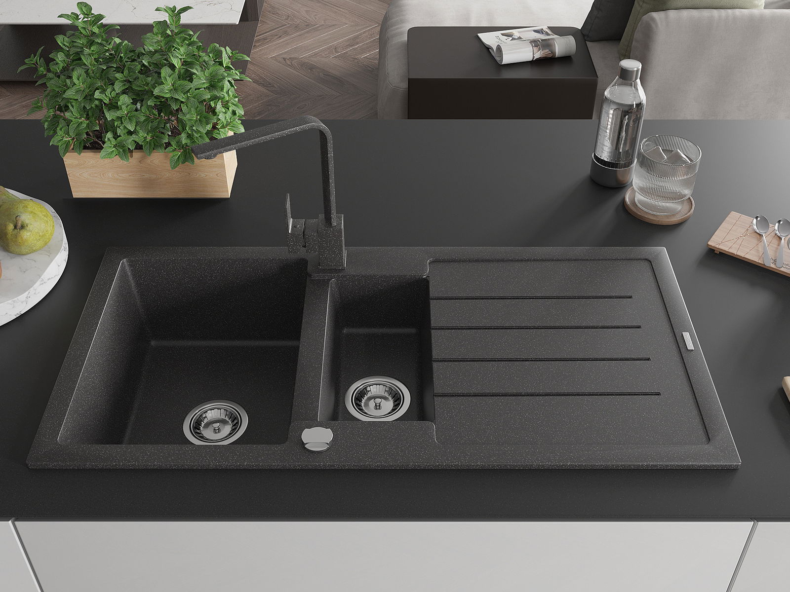 Povrch umývadla je odolný voči škvrnám a sfarbeniu, vďaka čomu sa ľahko čistí a zachováva si svoju farbu po dlhú dobu. Estetický a prakticky dopĺňajúci každú kuchyňu.