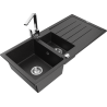 Mexen Andres žulový drez 1,5-komorový s odkvapkávačom a kuchynskou batériou Rita, čierny - 6515-77-670300-00