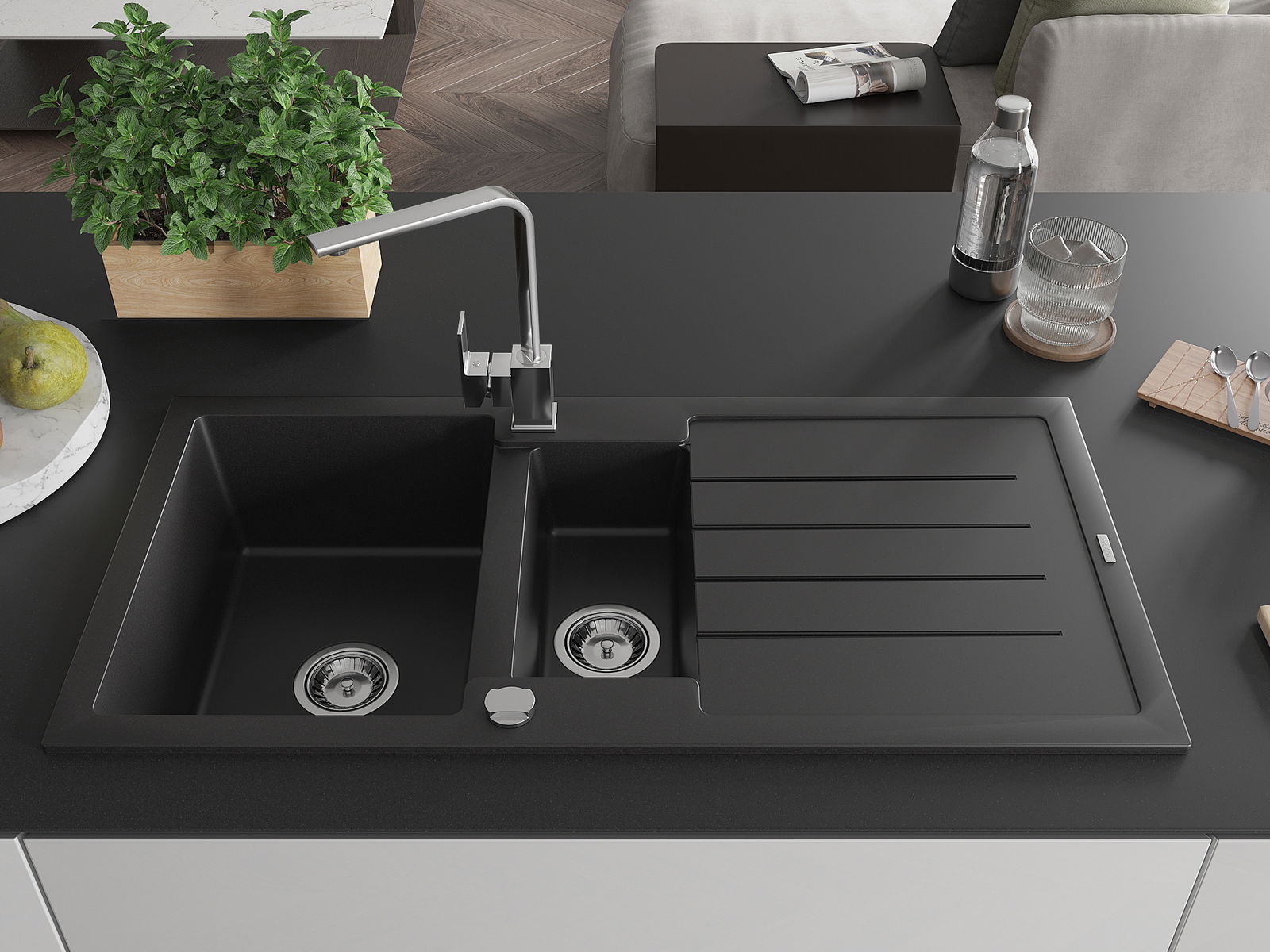 Drez bol vyrobený z vysoko kvalitného granitu. Predstavuje elegantný a predovšetkým praktický doplnok každej kuchyne, nezávisle od jej štýlu. Vysoká kvalita a trvácnosť granitu zaručujú mnohoročné používanie.