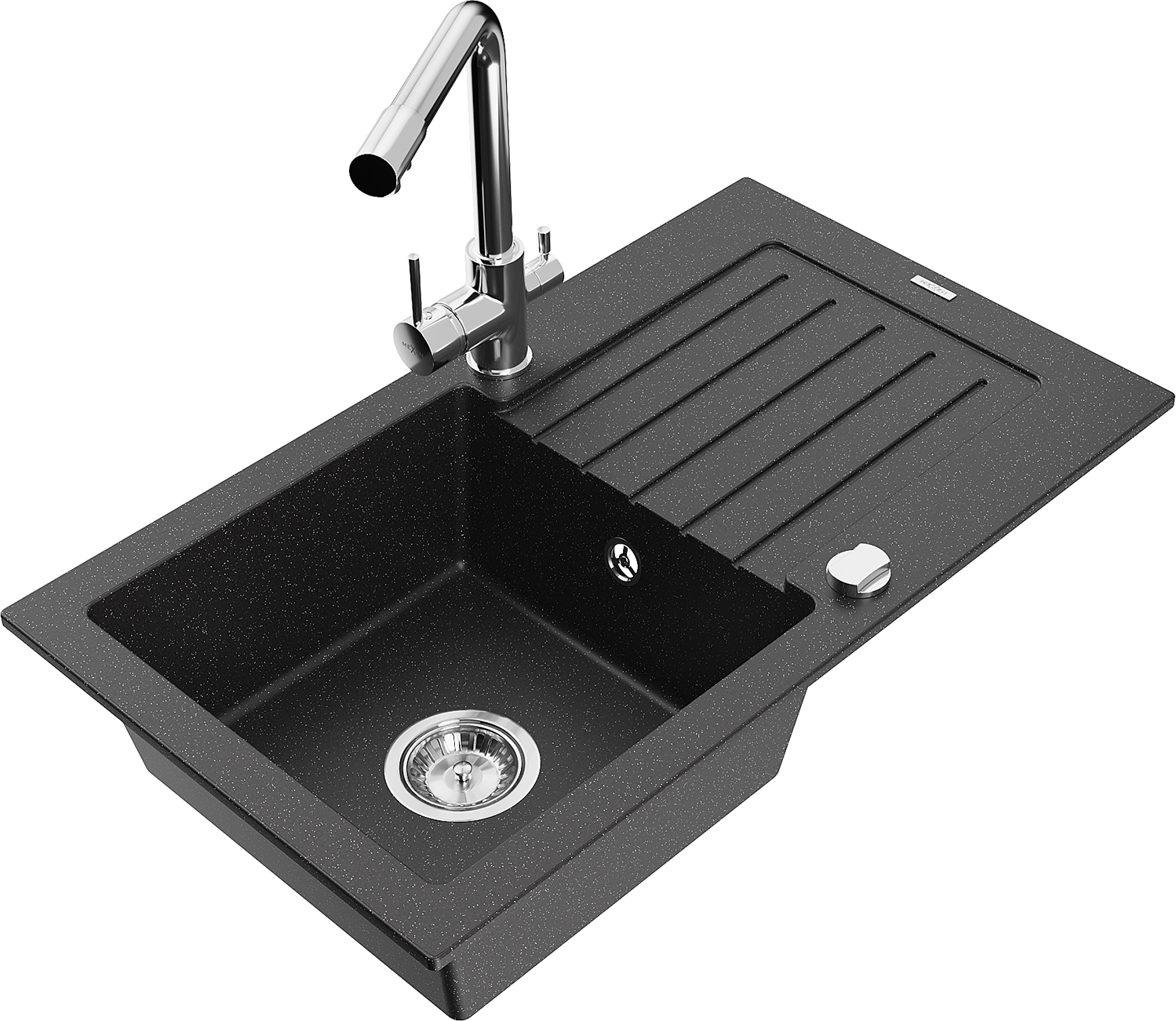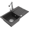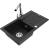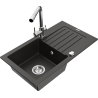 Mexen Pablo granitový drez s odkvapkávačom a kuchynskou batériou Duero, čierno/strieborný metalický - 6510-73-671600-00