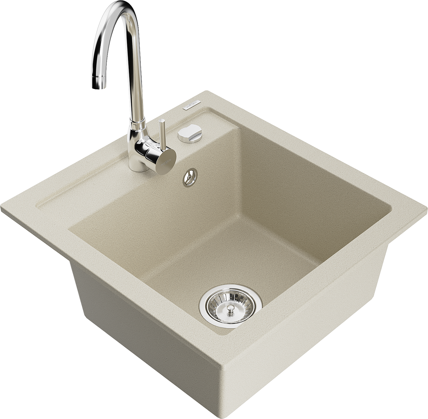 Mexen Vito žulový drez s 1 komorou a kuchynskou batériou Telma, béžový - 6503-69-670200-00