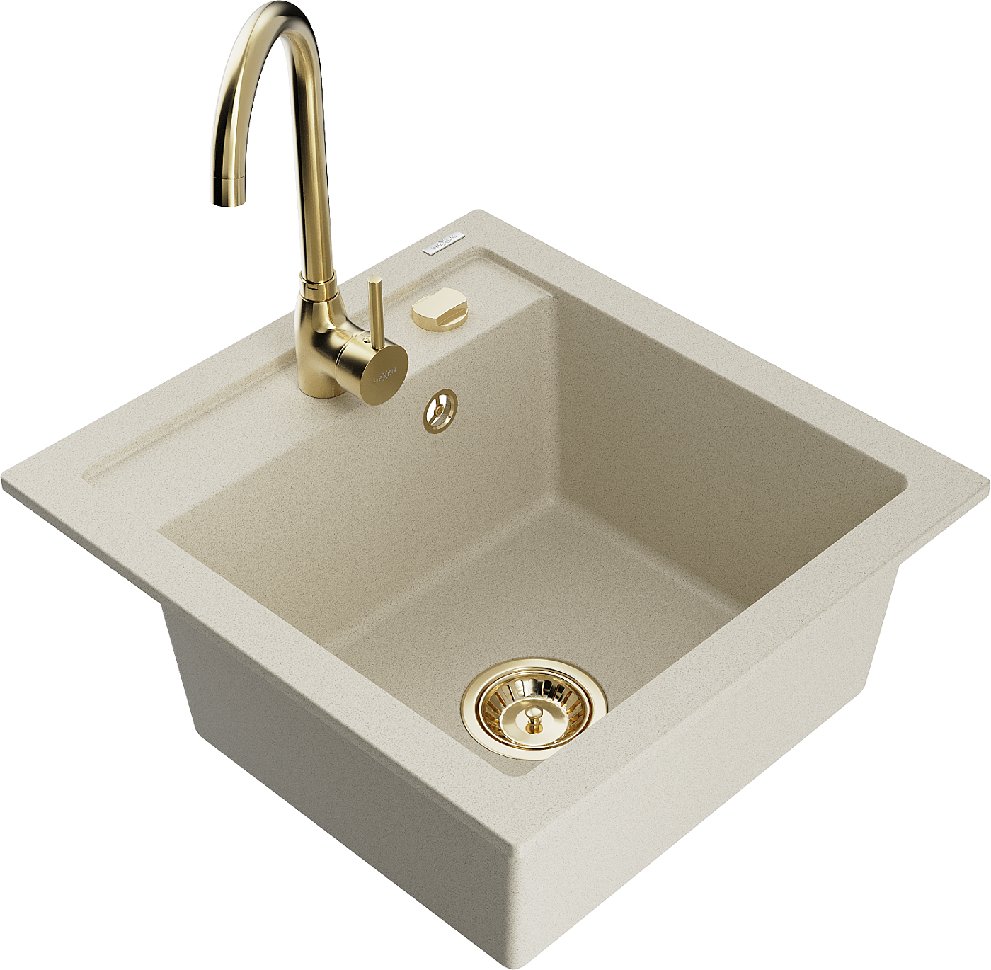 Mexen Vito žulový kuchynský drez 1-komorový s batériou Telma, béžový - 6503-69-670200-50