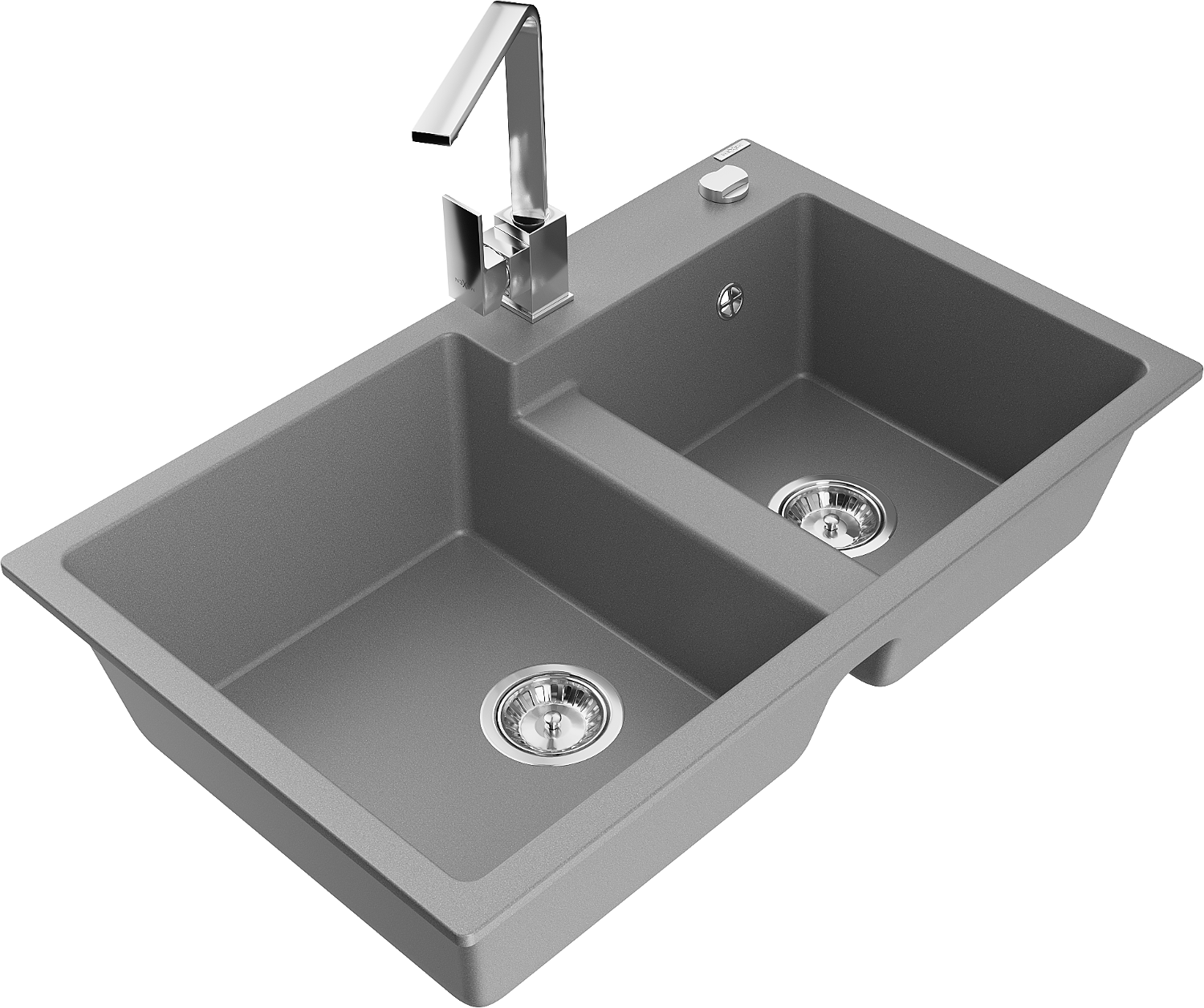 Mexen Tomas granitový drez 2-komorový s kuchynskou batériou Rita, sivý - 6516-71-670300-00