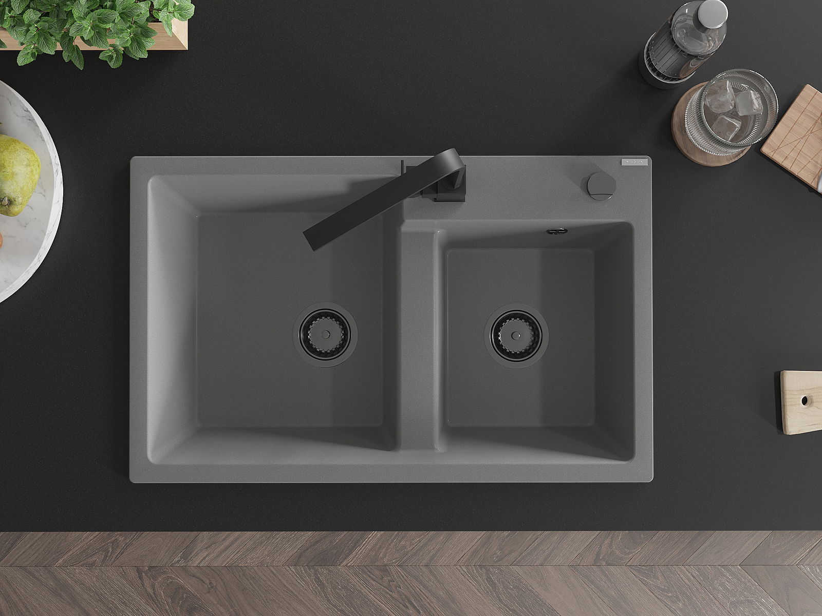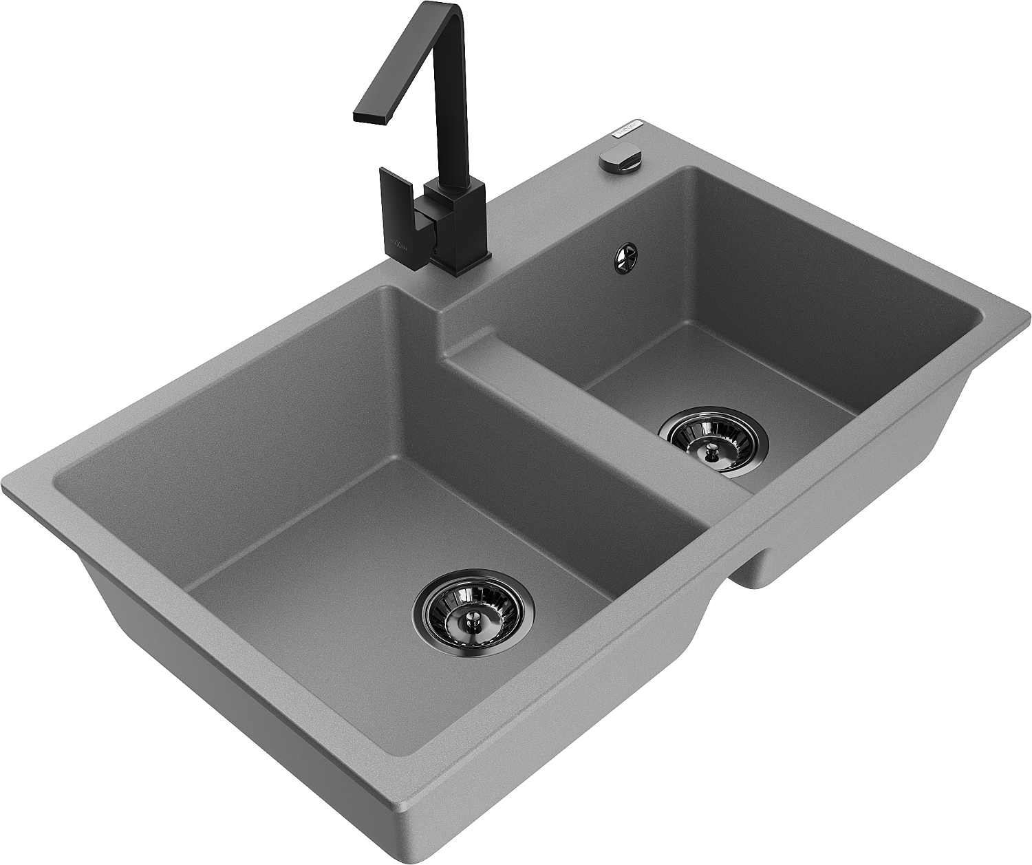 Mexen Tomas granitový drez s 2 komorami a kuchynskou batériou Rita, sivý - 6516-71-670300-70-B