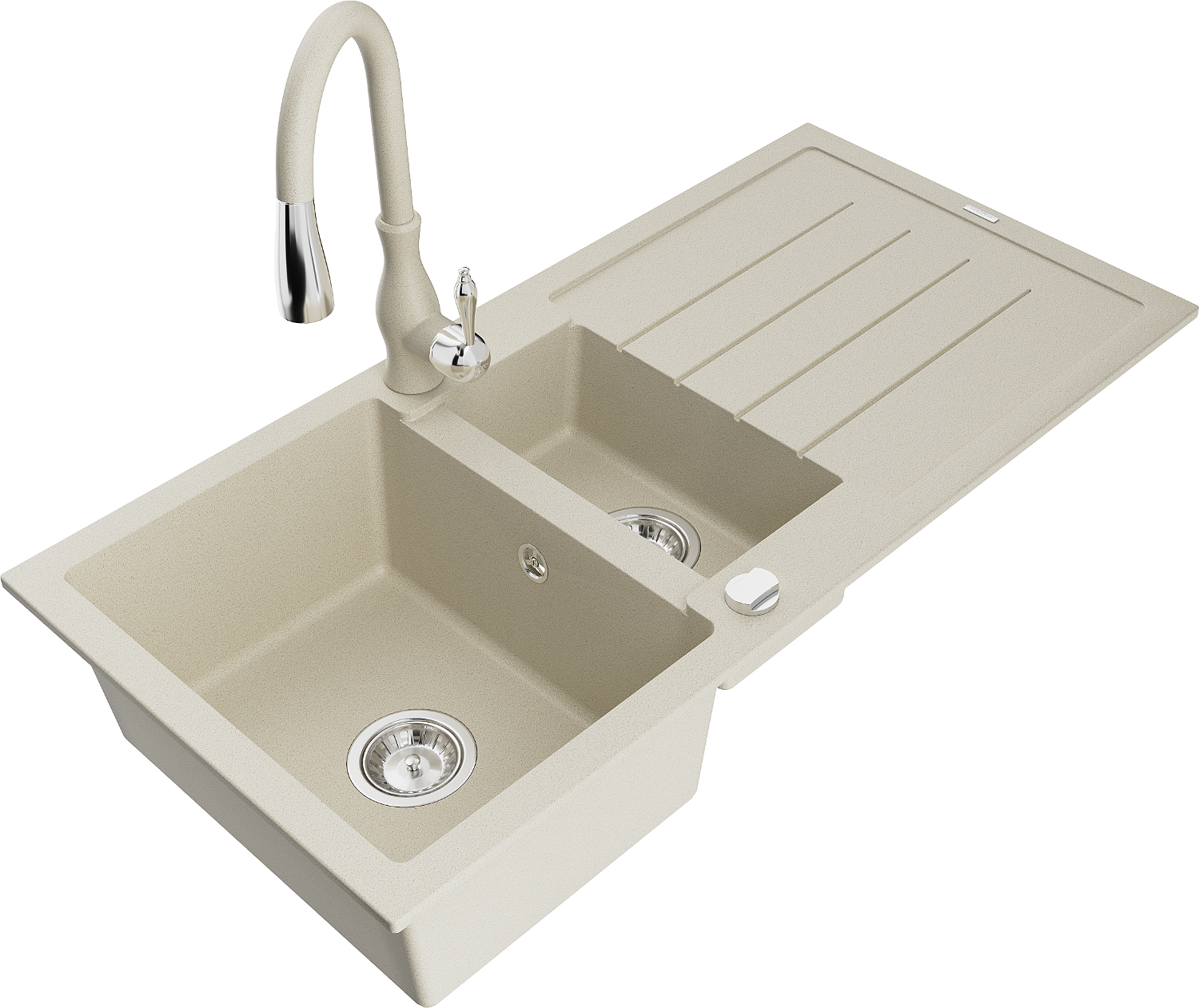 Mexen Andres žulový drez 1,5-komorový s odkvapkávačom a kuchynskou batériou Savita, béžový - 6515-69-672601-69