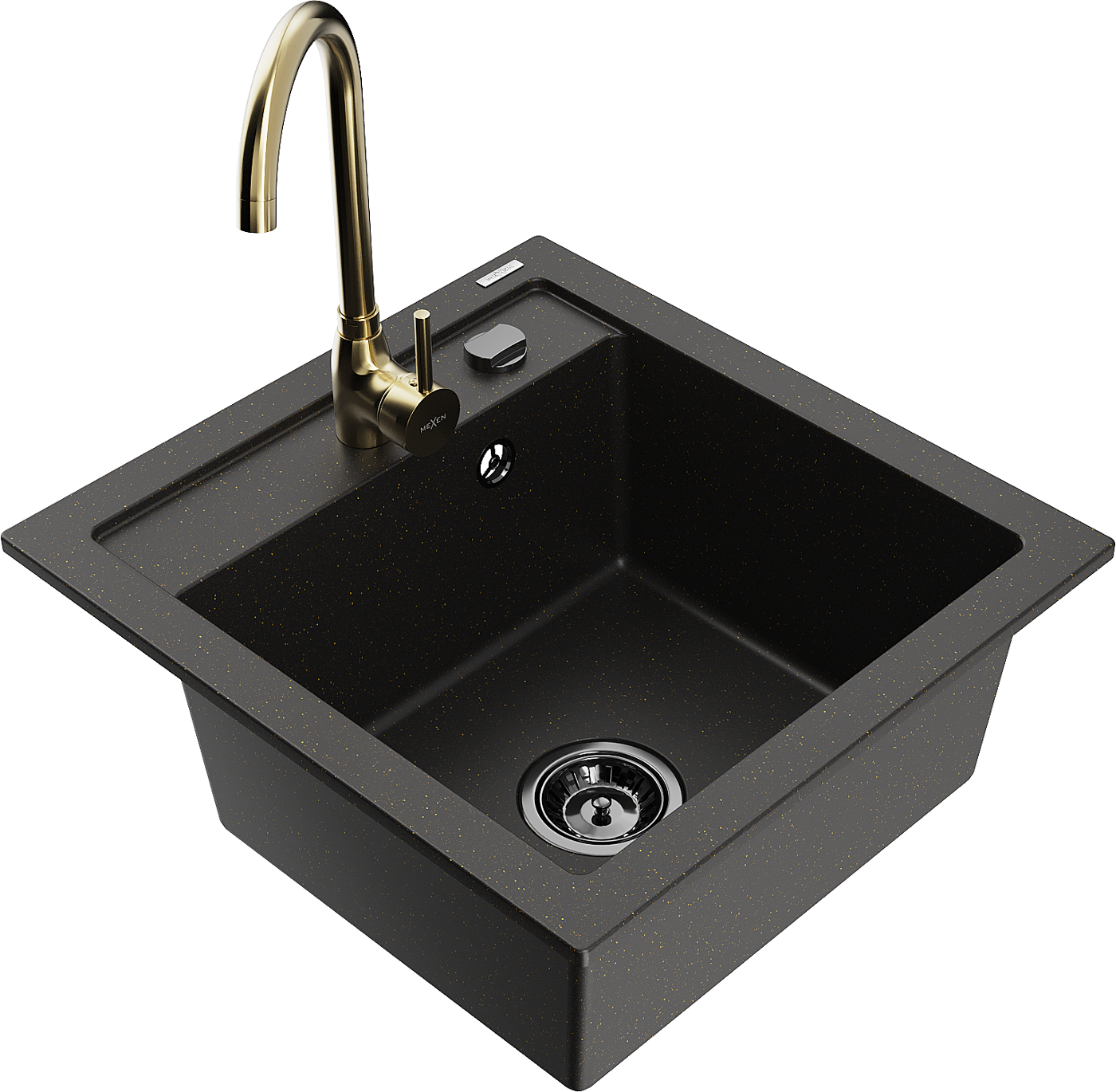 Mexen Vito granitový drez s 1 komorou a kuchynskou batériou Telma, čierny/zlatý metalický - 6503-75-670200-50-B