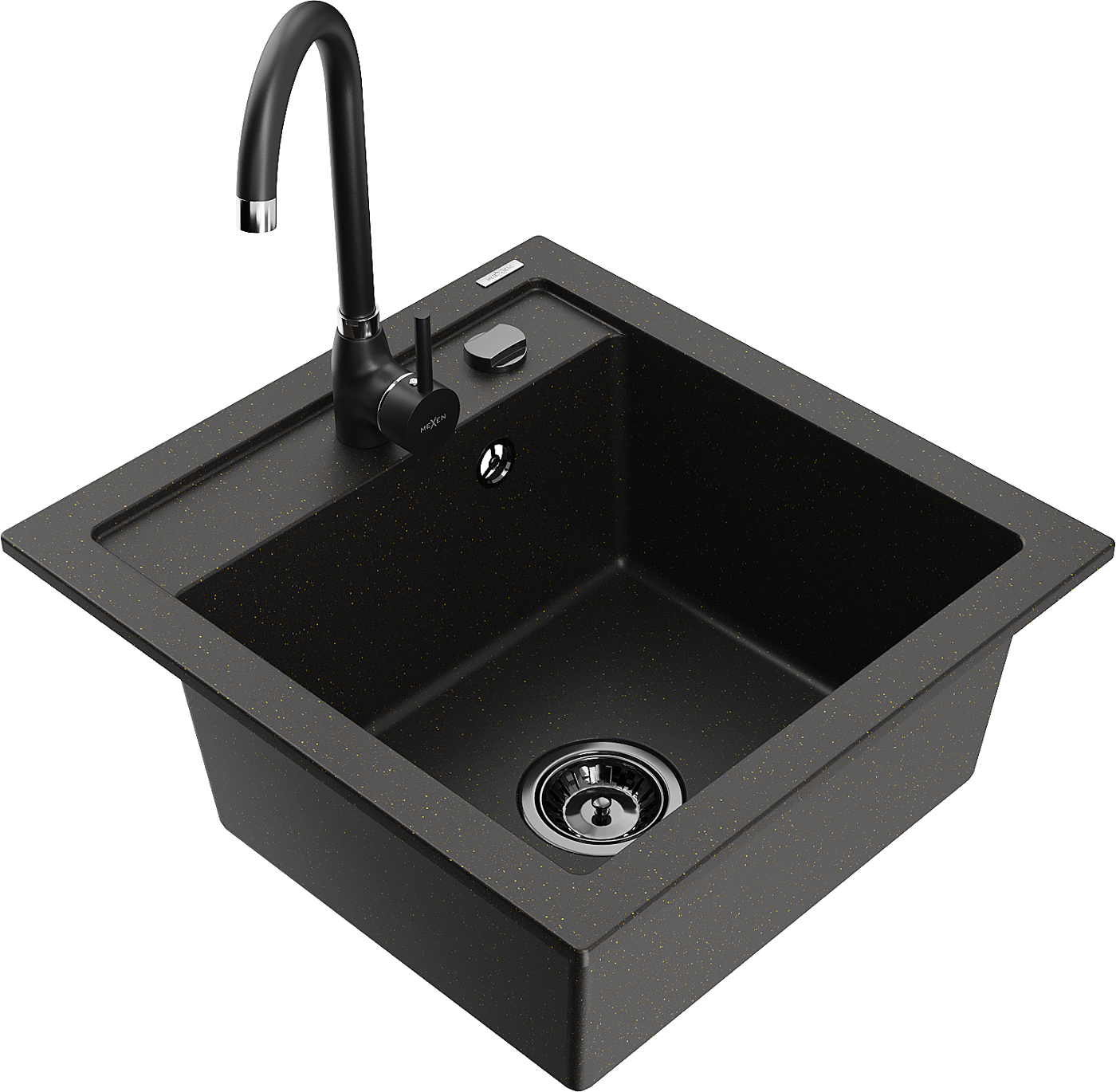 Mexen Vito granitový drez s jednou komorou s kuchynskou batériou Telma, čiernny/zlatý metalik - 6503-75-670200-70-B