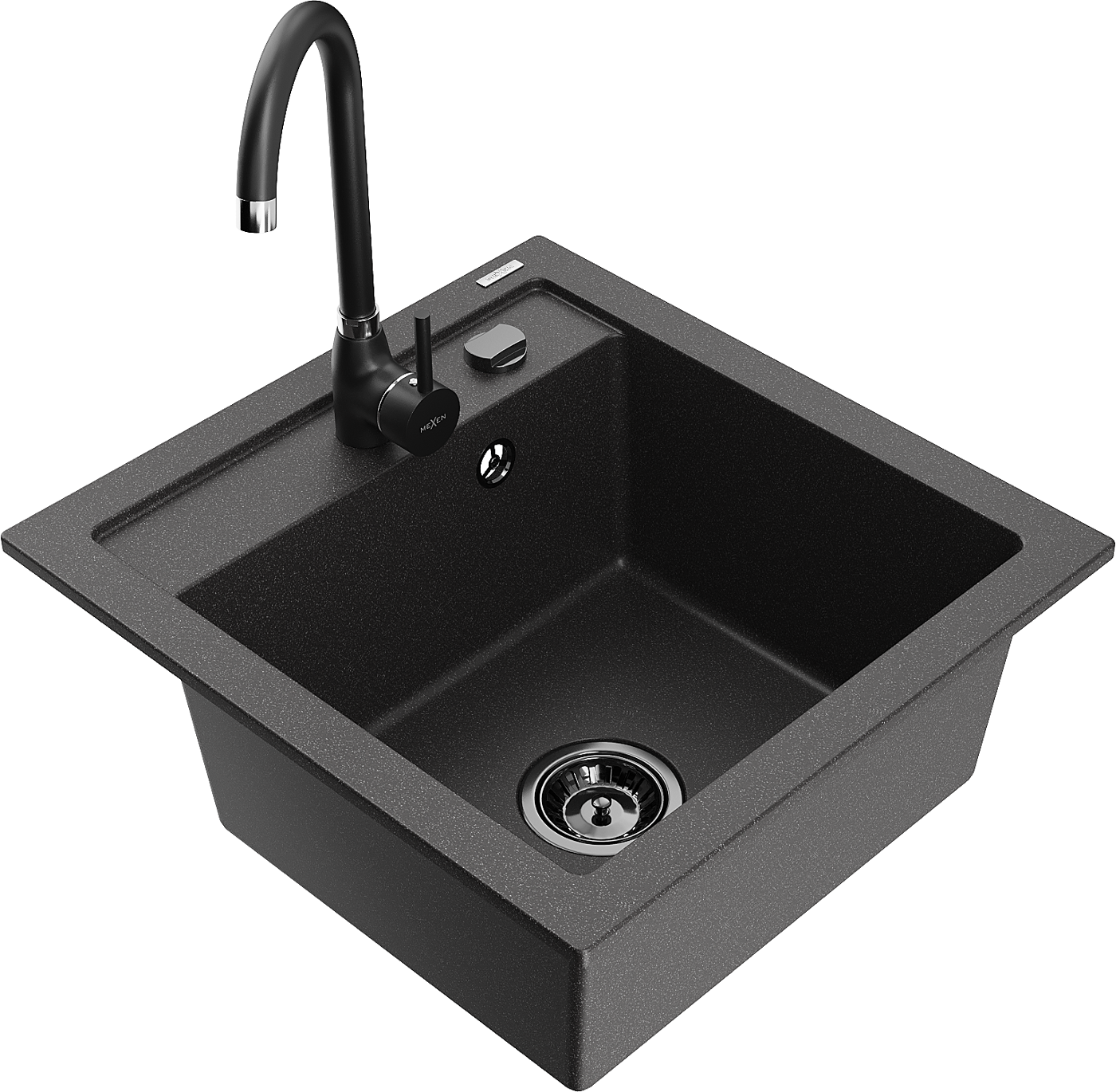 Mexen Vito granitový kuchynský drez 1-komorový s kuchynskou batériou Telma, čierny s fľakmi - 6503-76-670200-70-B