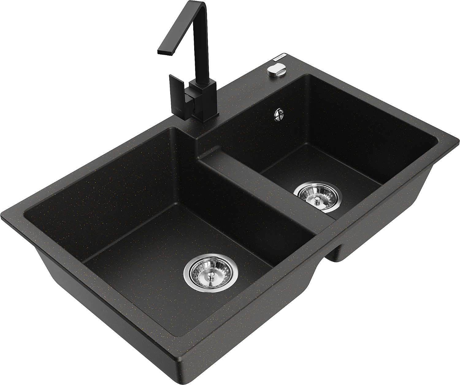 Mexen Tomas žulový dvojkomorový drez s kuchynskou batériou Rita, čierny/zlatý metalik - 6516-75-670300-70