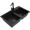 Mexen Tomas žulový kuchynský drez s dvoma komorami a kuchynskou batériou Rita, čierno/zlatý metalík - 6516-75-670300-70-B