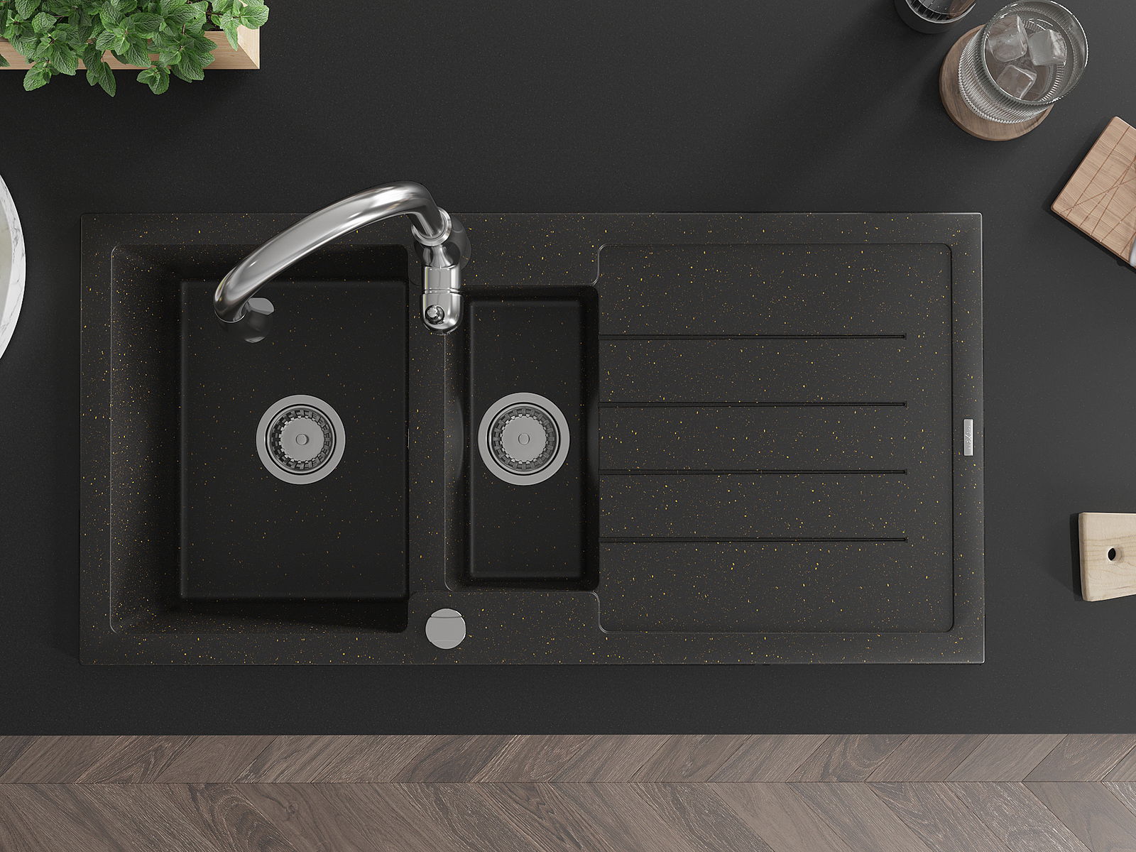 Povrch umývadla je odolný voči škvrnám a sfarbeniu, vďaka čomu sa ľahko čistí a zachováva si svoju farbu po dlhú dobu. Estetický a prakticky dopĺňajúci každú kuchyňu.