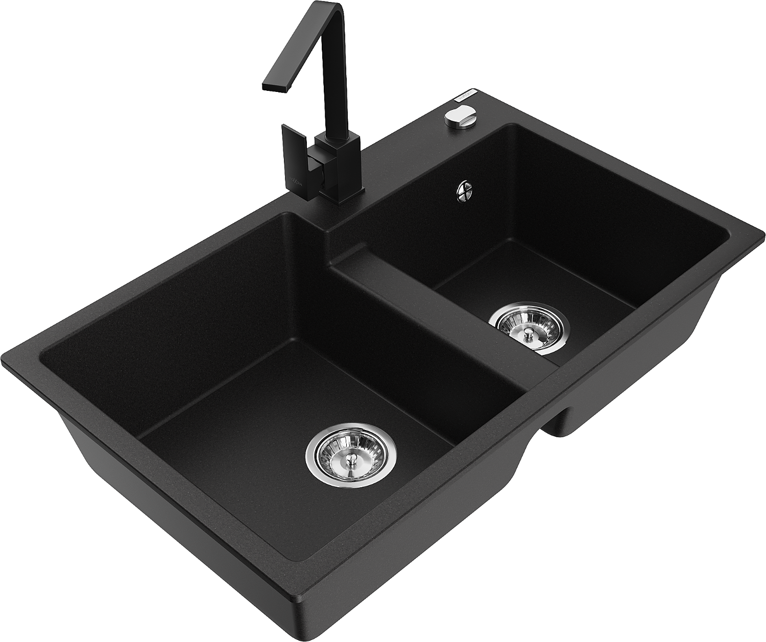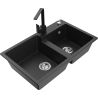 Mexen Tomas žulový kuchynský drez s 2 komorami a kuchynskou batériou Rita, čierny - 6516-77-670300-70