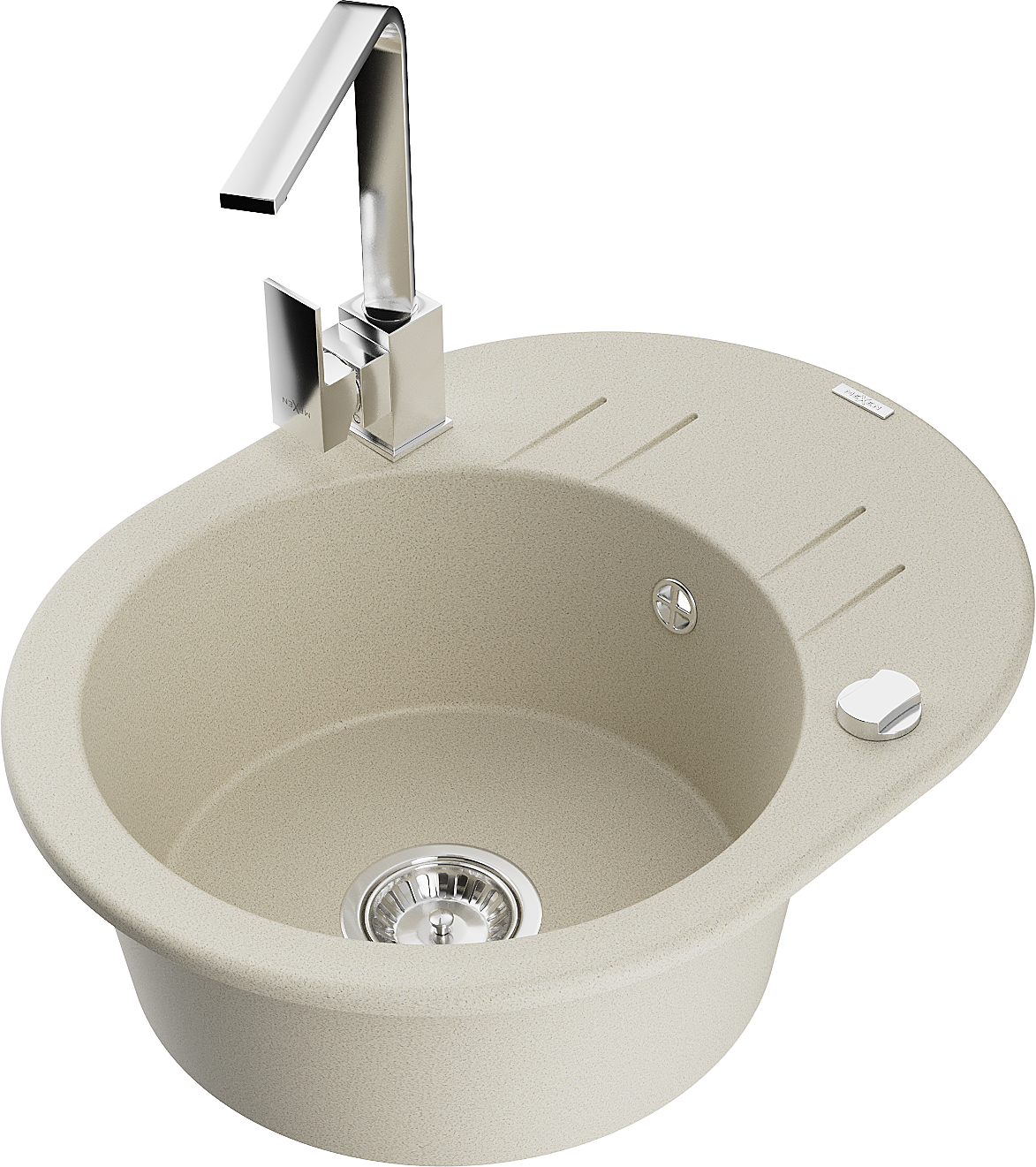 Mexen Kevin žulový kuchynský drez 1-komorový s odkvapom a kuchynskou batériou Rita, béžový - 6517-69-670300-00