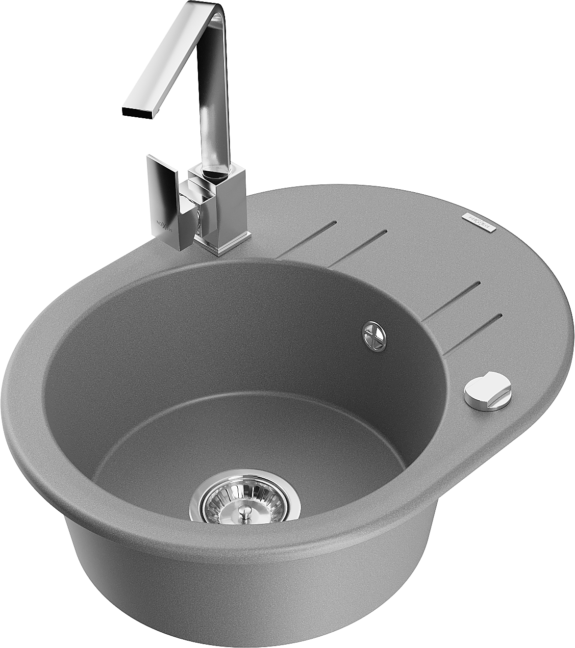 Mexen Kevin granitový drez 1-komorový s odkvapkávačom a kuchynskou batériou Rita, sivý - 6517-71-670300-00