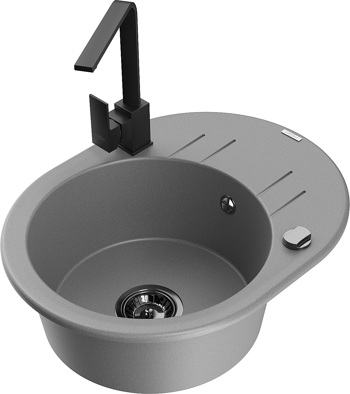 Mexen Kevin granitový drez 1-komorový s odkvapkávačom a kuchynskou batériou Rita, šedý - 6517-71-670300-70-B