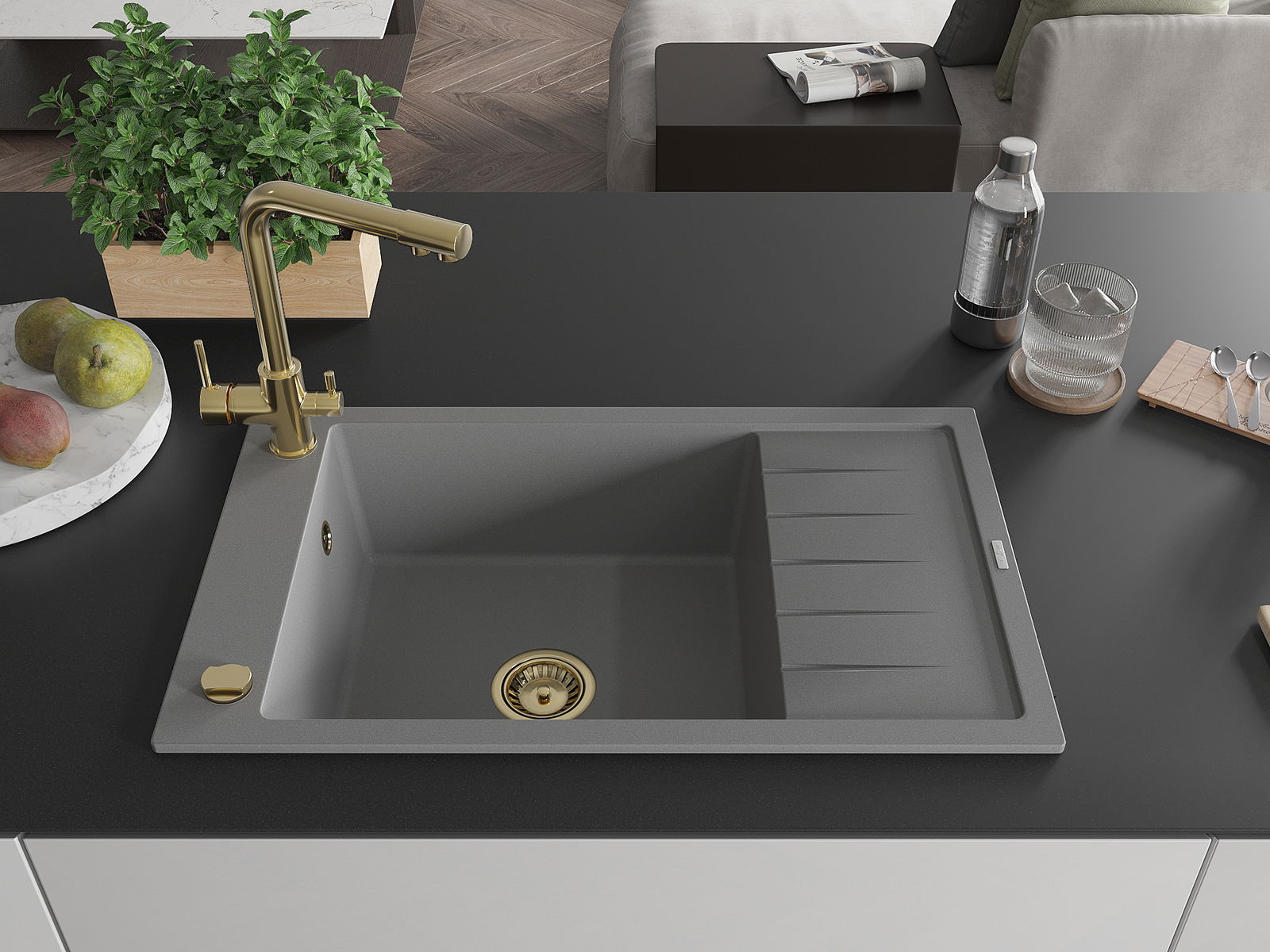 Povrch umývadla je odolný voči škvrnám a sfarbeniu, vďaka čomu sa ľahko čistí a zachováva si svoju farbu po dlhú dobu. Estetický a prakticky dopĺňajúci každú kuchyňu.
