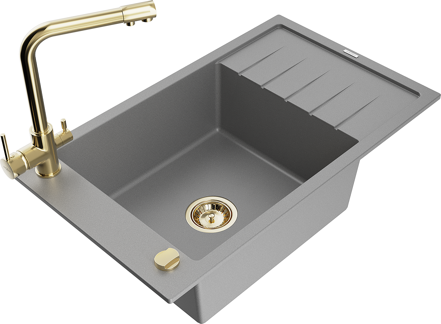 Mexen Elias žulový drez s 1 komorou s odkvapkávačom a kuchynskou batériou Duero, sivý - 6511-71-671600-50