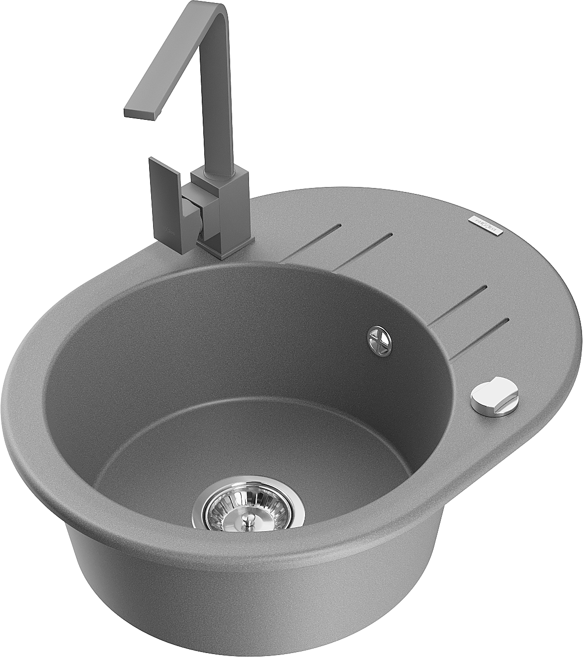 Mexen Kevin žulový kuchynský drez 1-komorový s odkvapkávačom a kuchynskou batériou Rita, šedá - 6517-71-670300-71