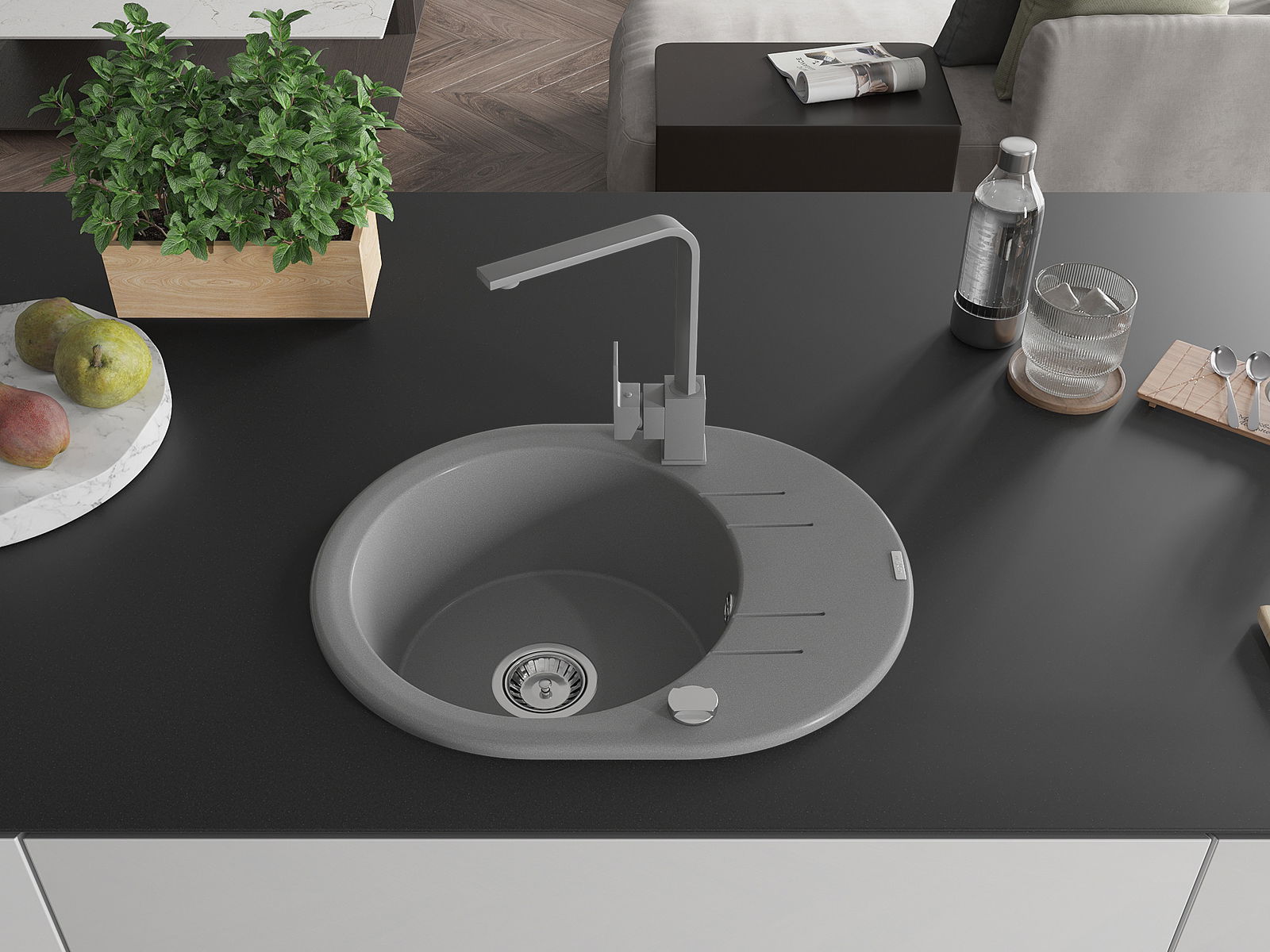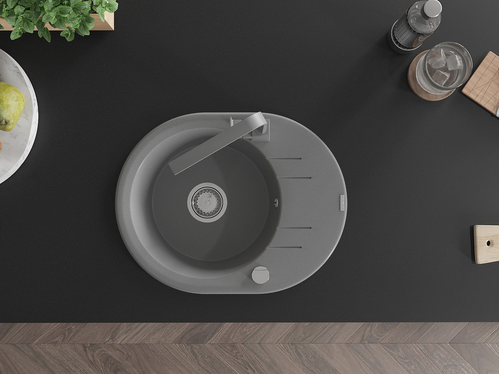 Povrch umývadla je odolný voči škvrnám a sfarbeniu, vďaka čomu sa ľahko čistí a zachováva si svoju farbu po dlhú dobu. Estetický a prakticky dopĺňajúci každú kuchyňu.