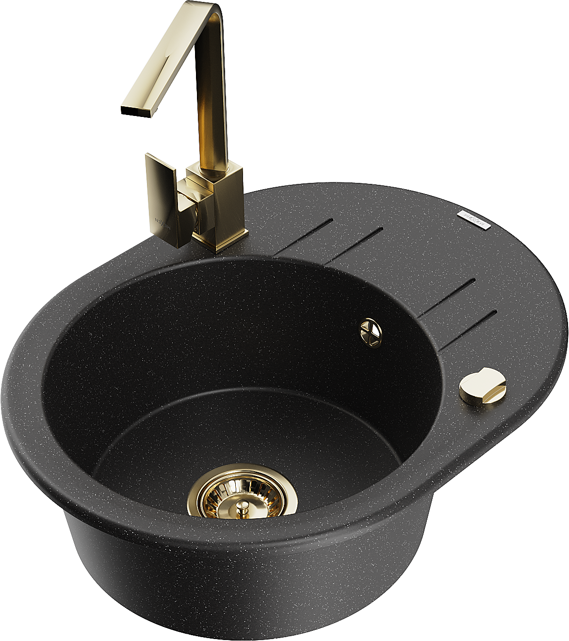 Mexen Kevin granitový drez s 1 komorou s odkvapkávačom a kuchynskou batériou Rita, čierny/strieborný - 6517-73-670300-50