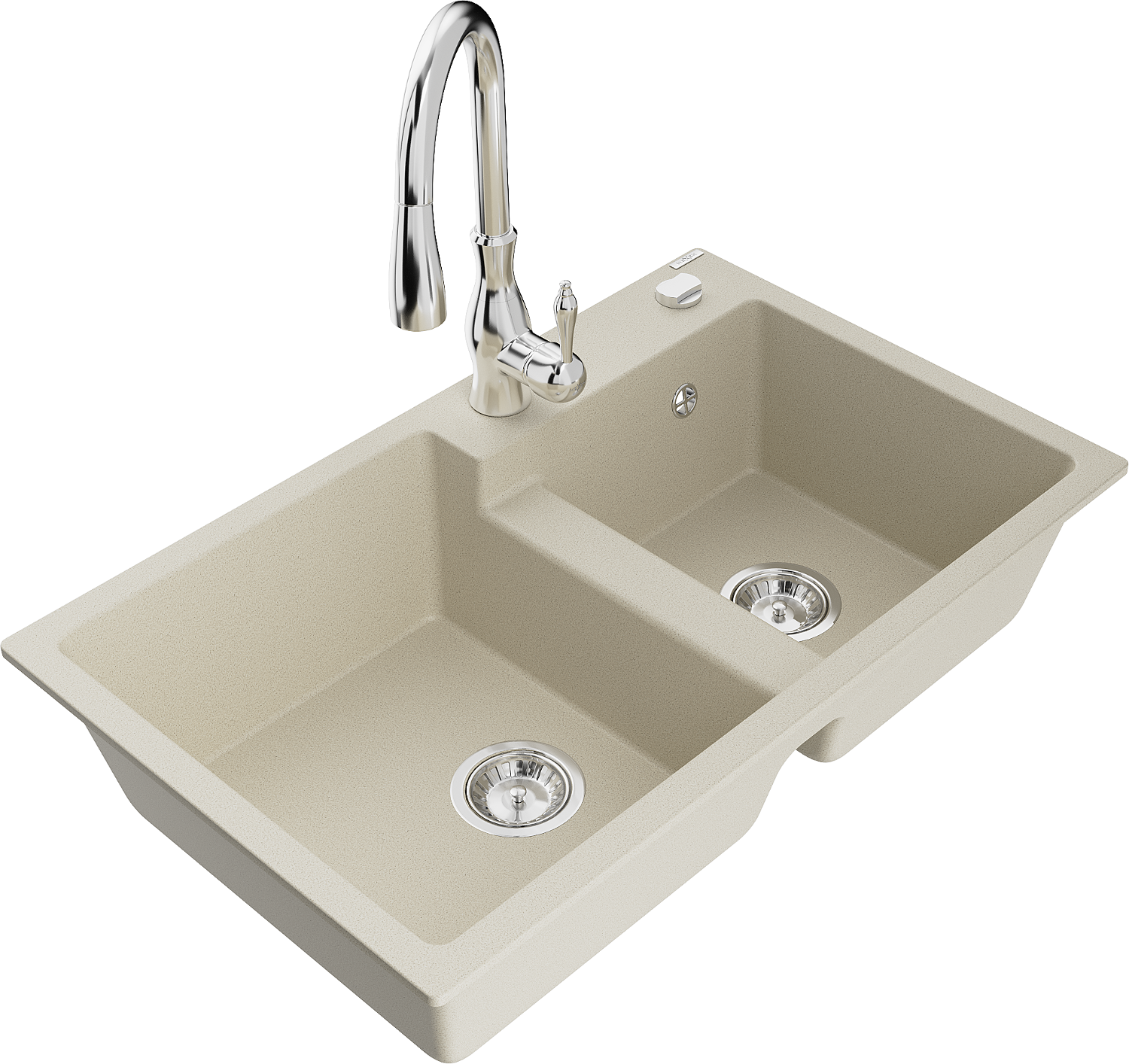 Mexen Tomas granitový drez 2-komorový s kuchynskou batériou Savita, béžový - 6516-69-672601-00