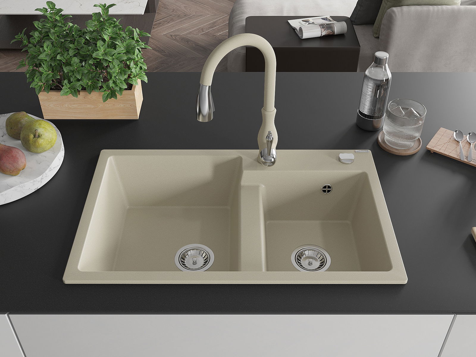 Povrch umývadla je odolný voči škvrnám a sfarbeniu, vďaka čomu sa ľahko čistí a zachováva si svoju farbu po dlhú dobu. Estetický a prakticky dopĺňajúci každú kuchyňu.
