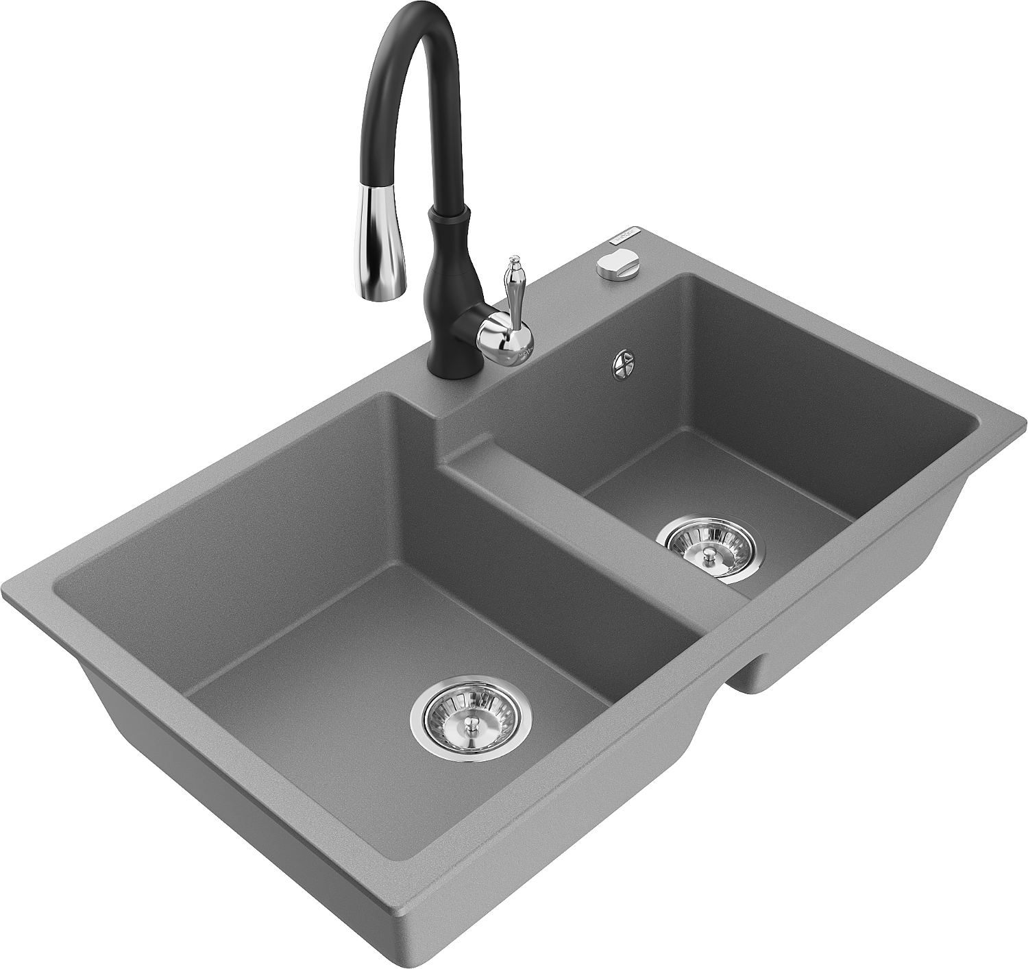Mexen Tomas dvojkomorový granitový drez s kuchynskou batériou Savita, sivý - 6516-71-672601-70