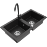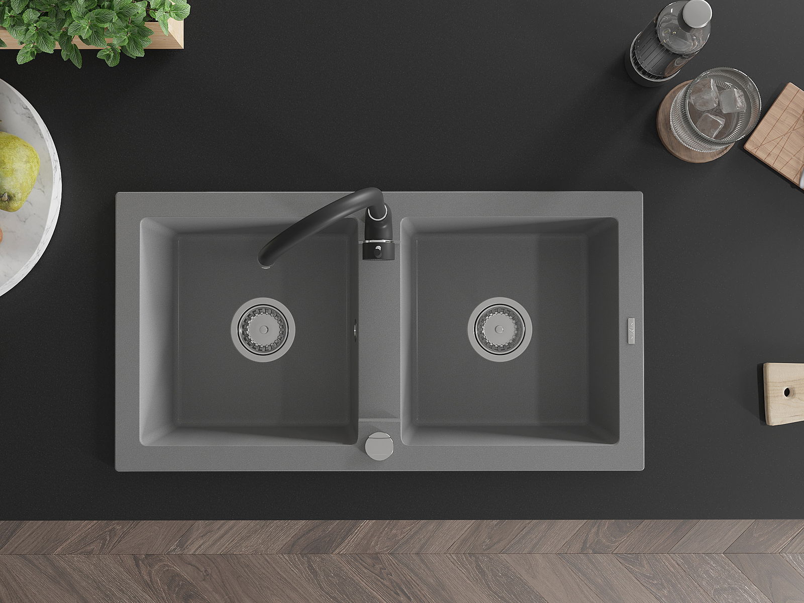 Mexen Mario kuchynský drez žulový 2-komorový s kuchynskou batériou Telma, sivý - 6504-71-670200-70
