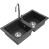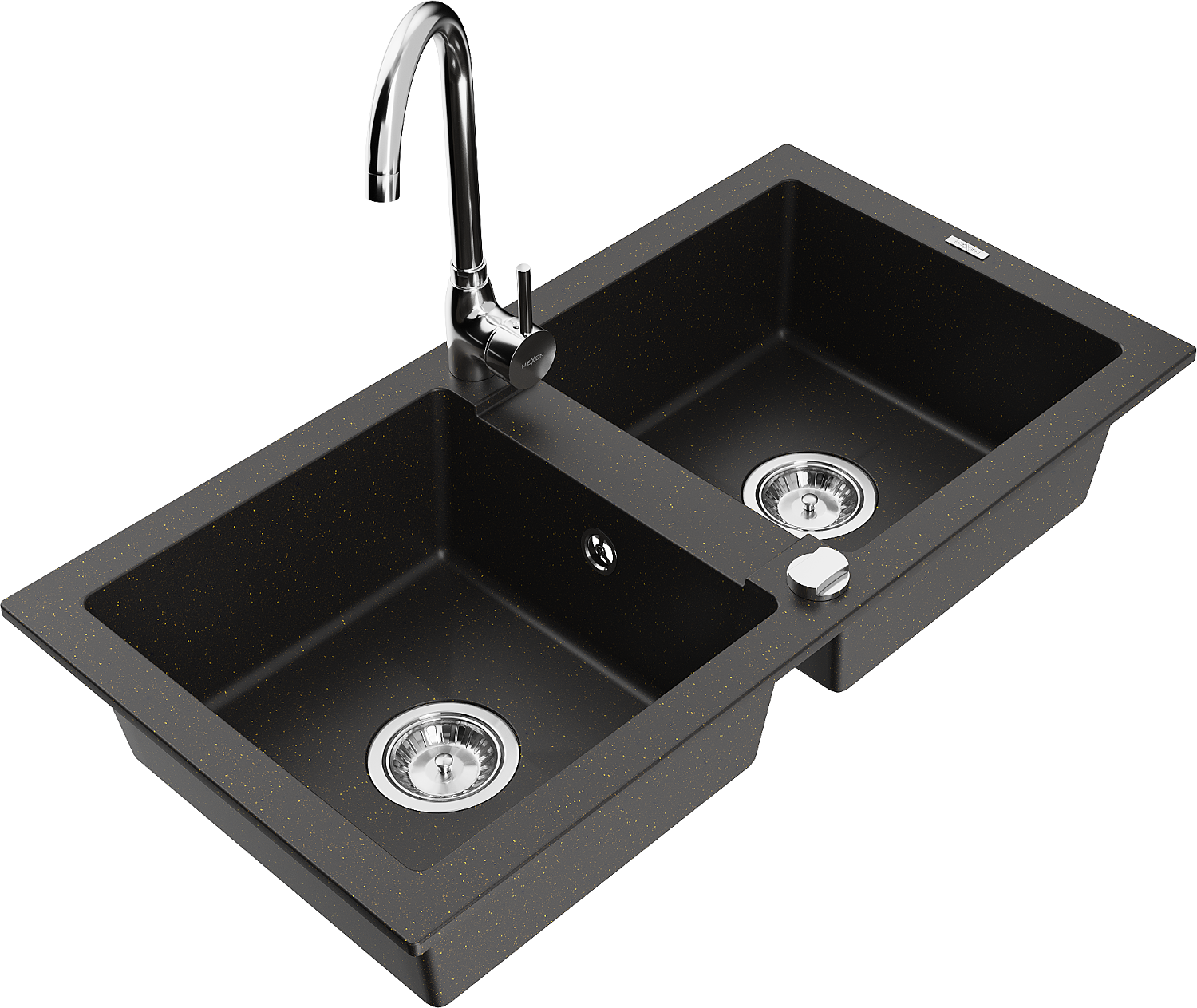 Mexen Mario žulový drez dvojkomorový s kuchynskou batériou Telma, čierny/zlatý - 6504-75-670200-00