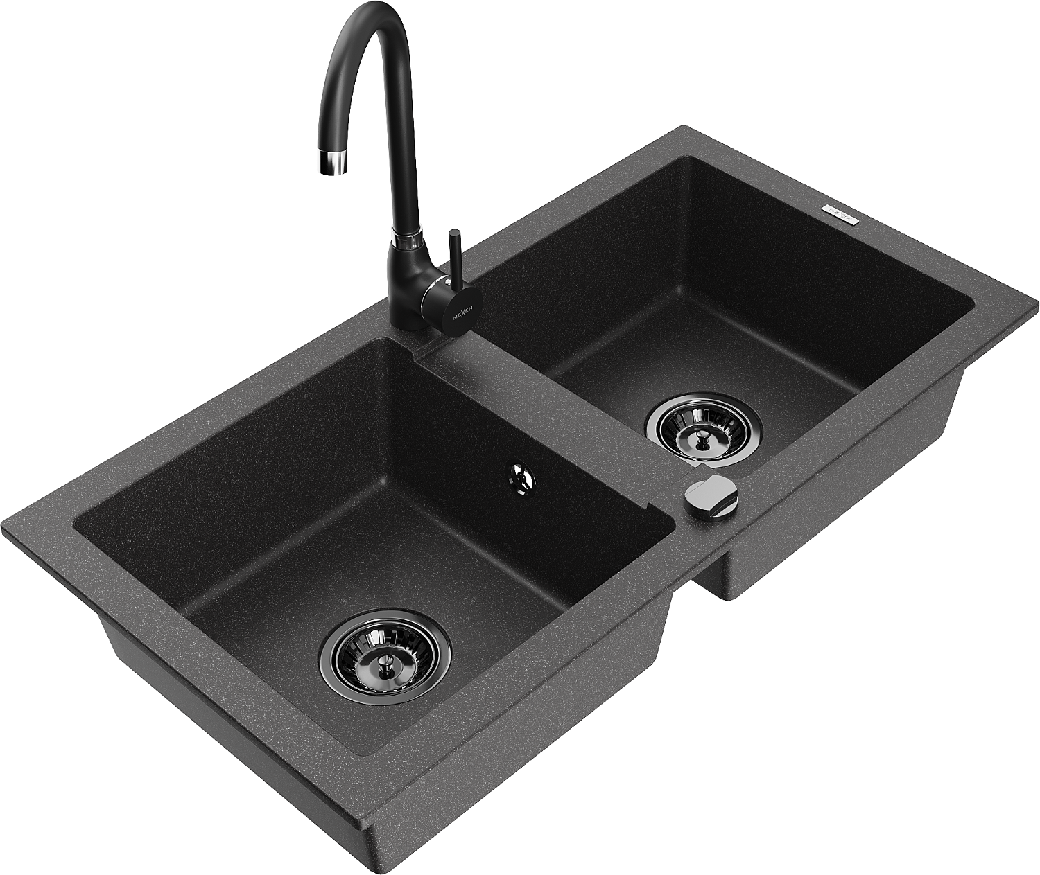 Mexen Mario žulový drez 2-komorový s kuchynskou batériou Telma, čierny škvrnitý - 6504-76-670200-70-B
