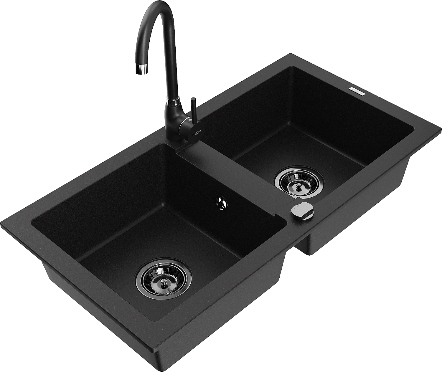 Mexen Mario žulový drezen dvojkomorový s kuchynskou batériou Telma, čierny - 6504-77-670200-70-B