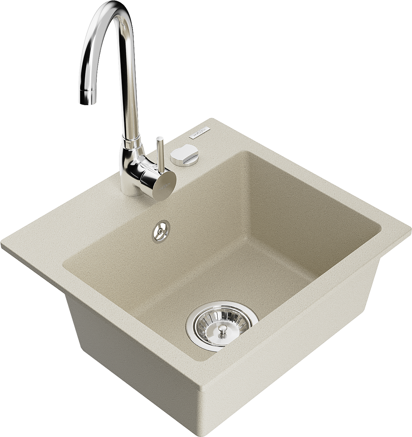 Mexen Milo granitový drez s 1-komorou s kuchynskou batériou Telma, béžový - 6505-69-670200-00