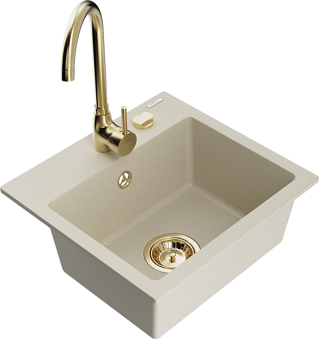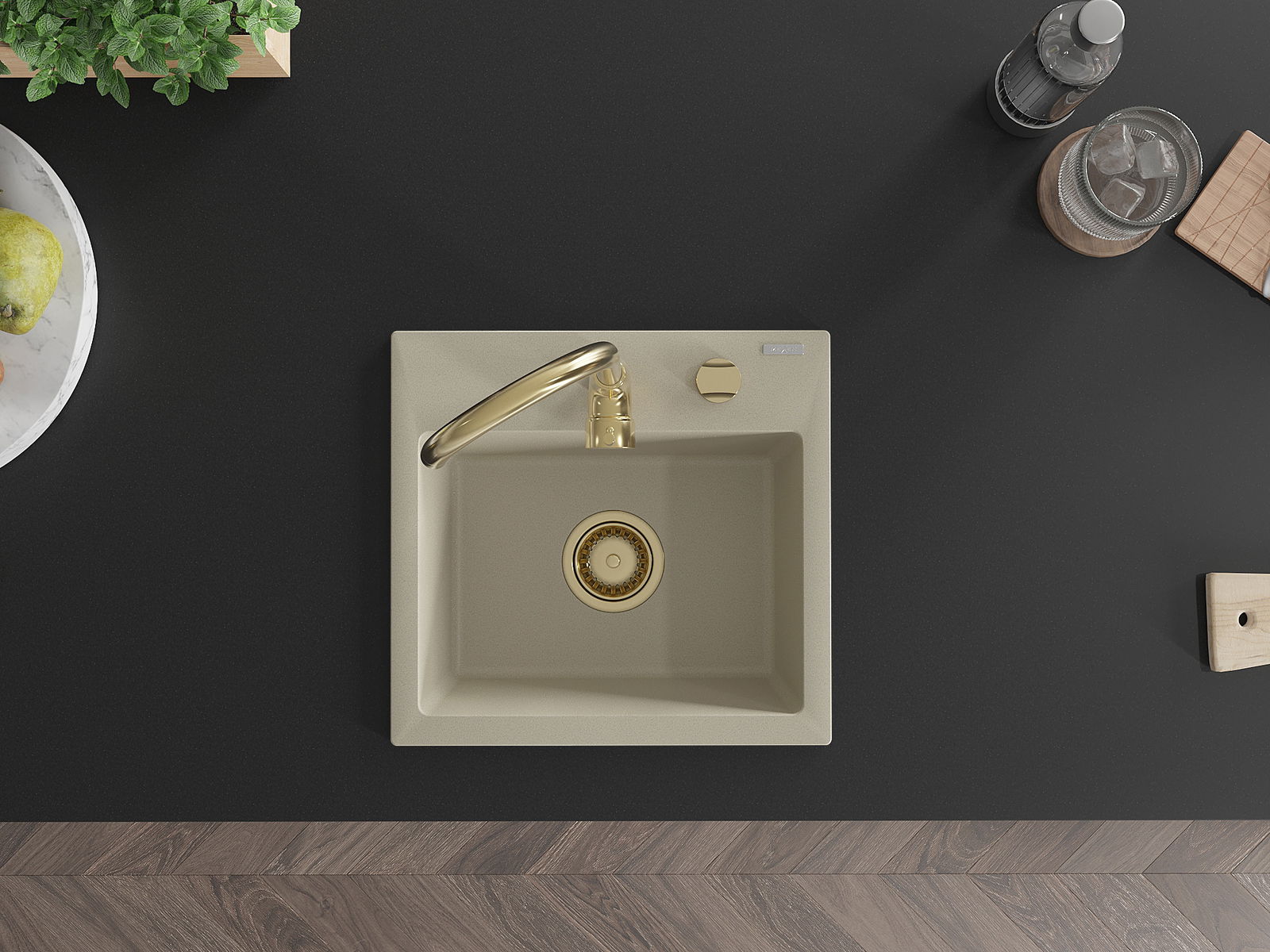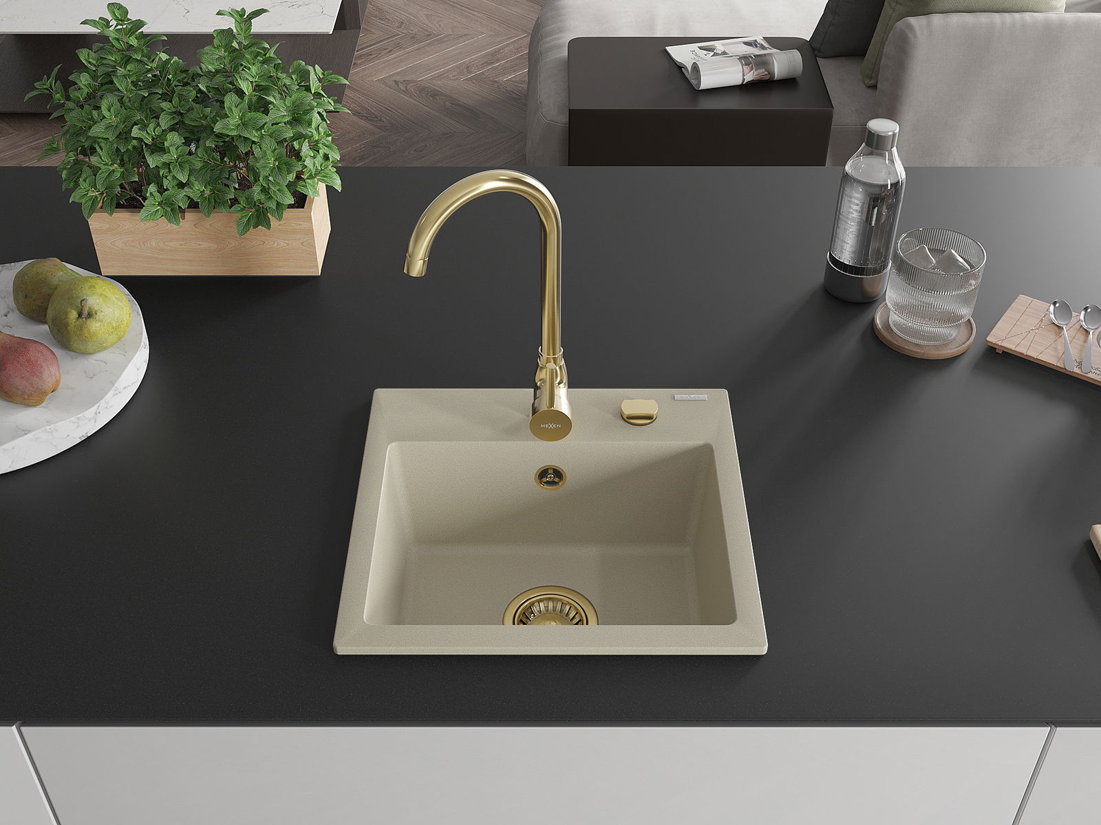 Mexen Milo granitový kuchynský drez 1-komorový s kuchynskou batériou Telma, béžový - 6505-69-670200-50