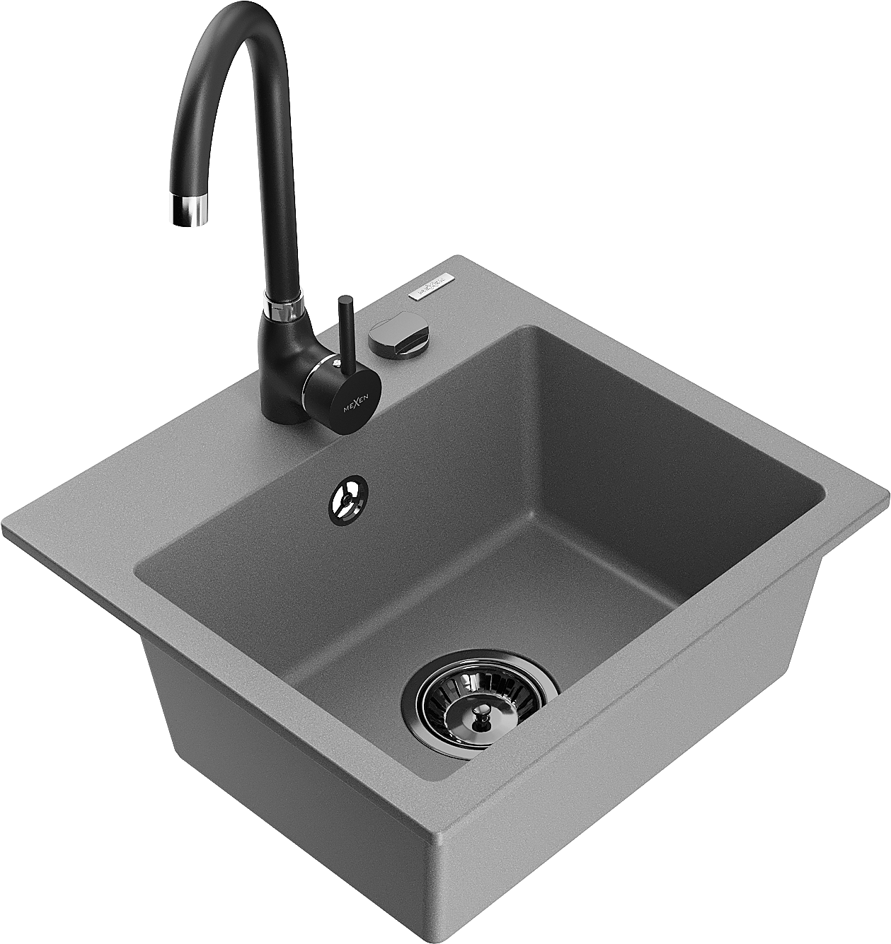 Mexen Milo drez z granitu 1-komorový s kuchynskou batériou Telma, sivý - 6505-71-670200-70-B