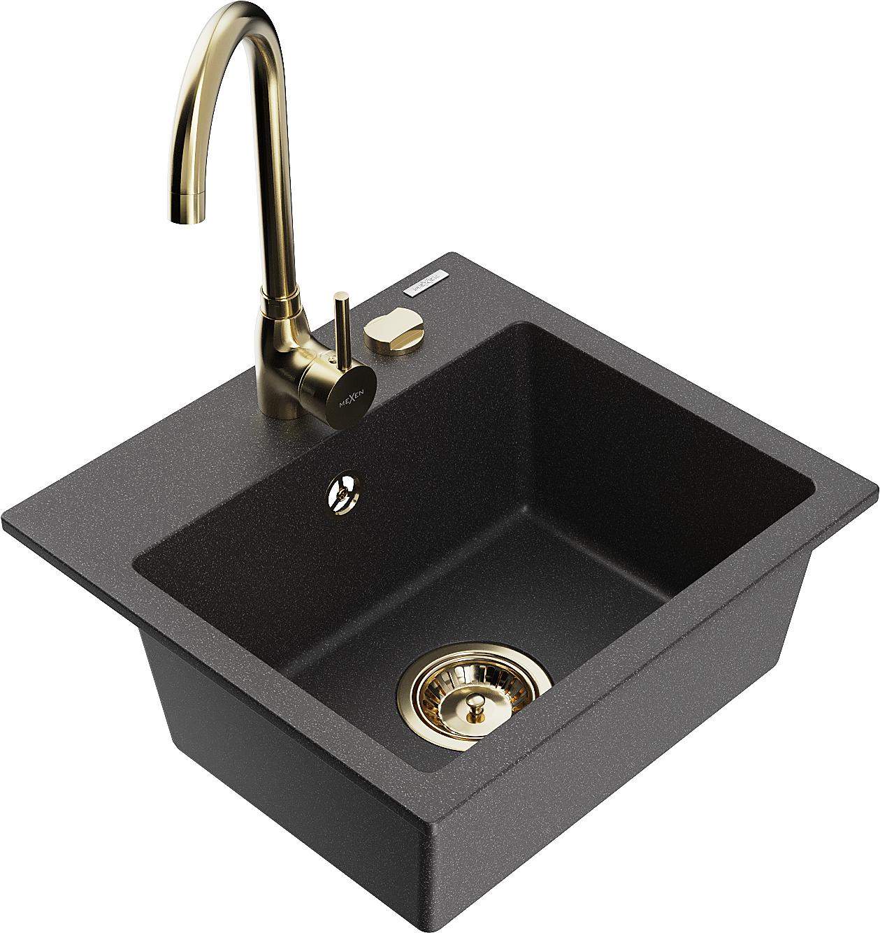 Mexen Milo jednokomorový žulový drez s kuchynskou batériou Telma, čierny s bodkami - 6505-76-670200-50