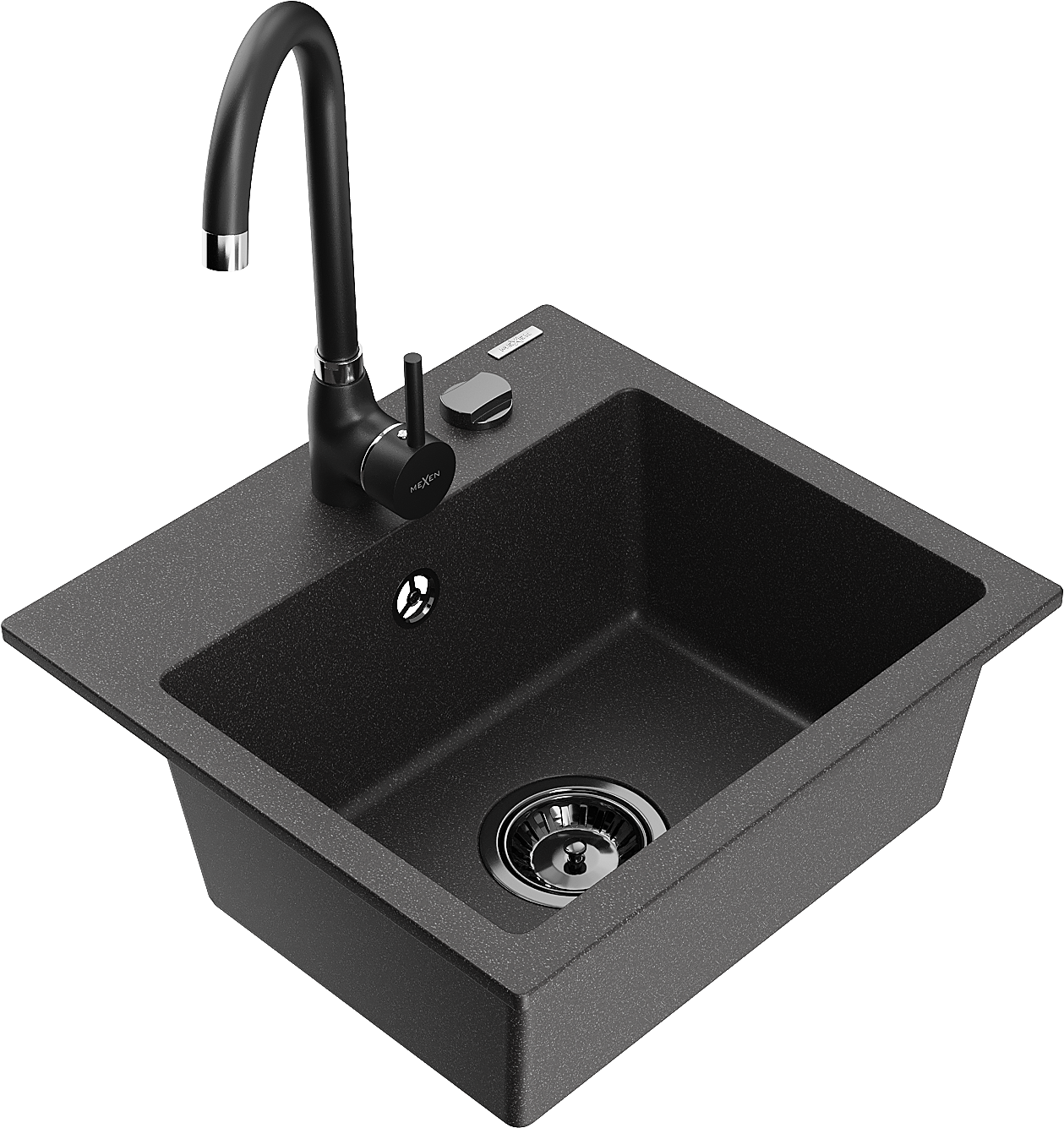Mexen Milo granitový drez 1-komorový s kuchynskou batériou Telma, čierna škvrnitá - 66505-76-670200-70-B