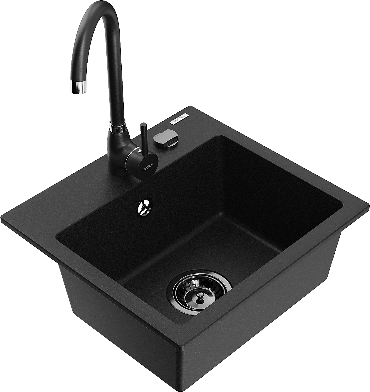 Mexen Milo žulový drez 1-komorový s kuchynskou batériou Telma, čierny - 6505-77-670200-70-B