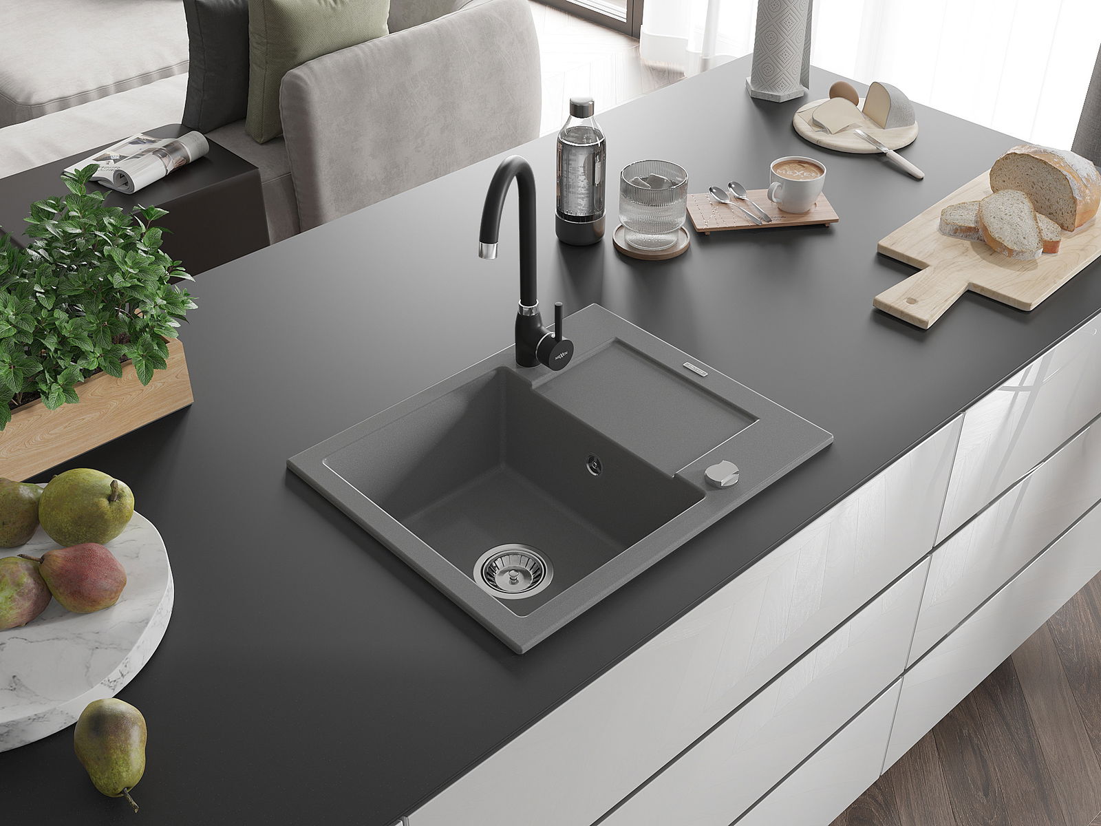 Povrch umývadla je odolný voči škvrnám a sfarbeniu, vďaka čomu sa ľahko čistí a zachováva si svoju farbu po dlhú dobu. Estetický a prakticky dopĺňajúci každú kuchyňu.