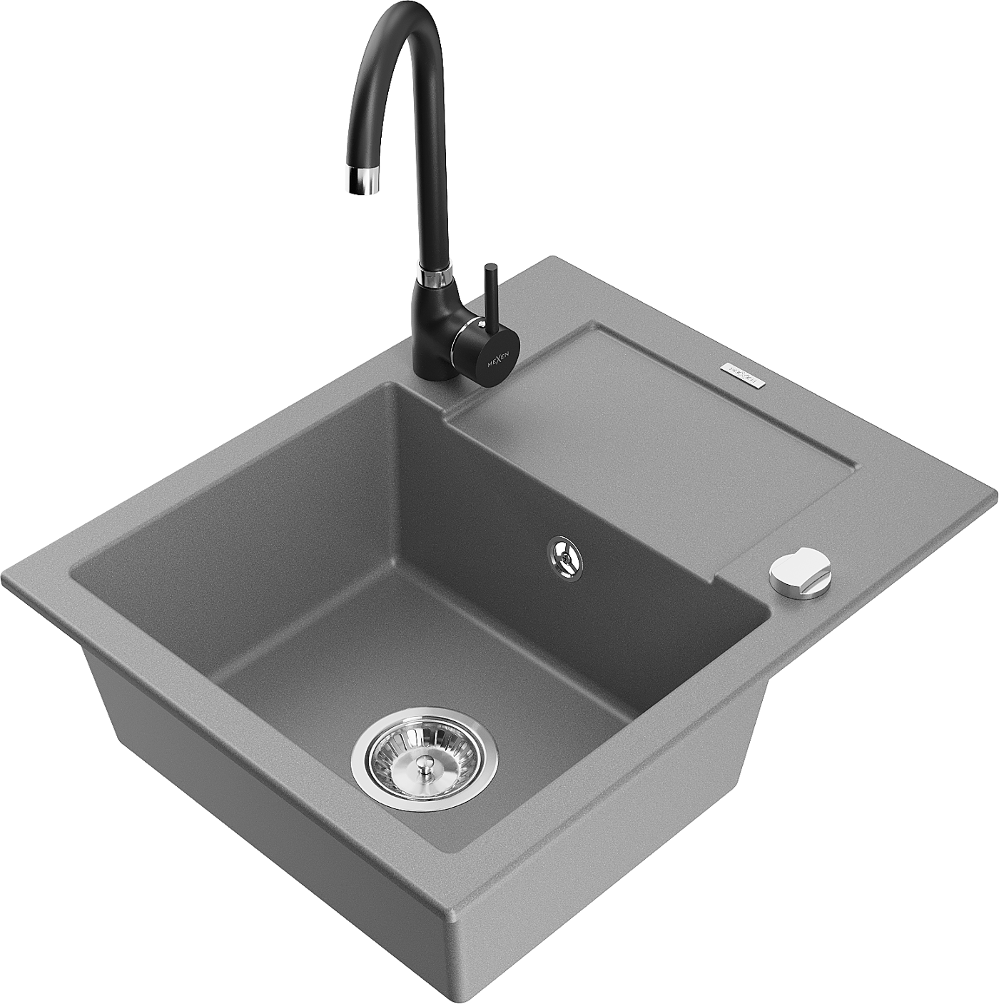 Mexen Enzo žulový drez s jednou komorou a odkvapkávacou plochou a kuchynskou batériou Telma, sivý - 6506-71-670200-70