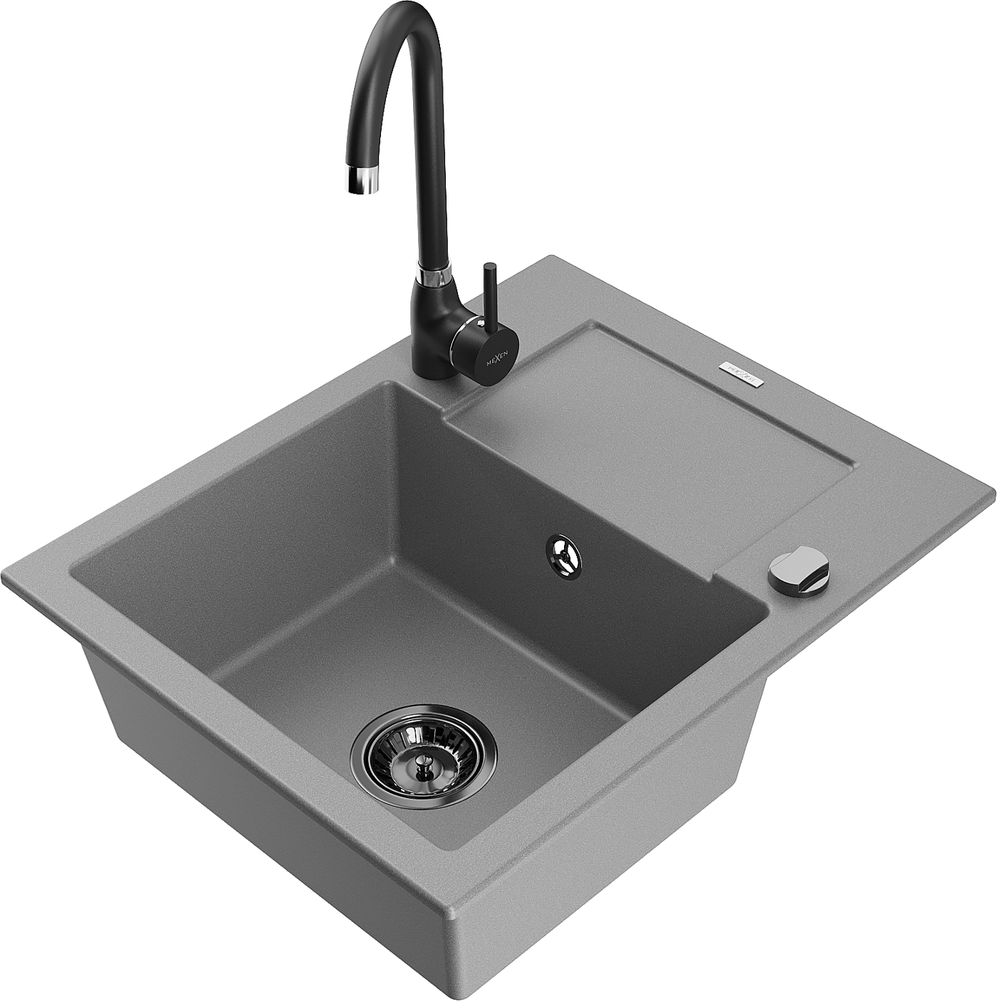 Mexen Enzo žulový drez s 1 komorou s odkvapkávačom a kuchynskou batériou Telma, šedý - 6506-71-670200-70-B