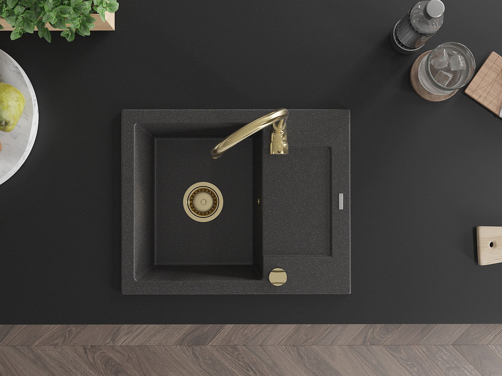 Povrch kuchynského drezu je odolný voči škvrnám a zafarbeniu, vďaka čomu sa ľahko udržiava a zachováva svoju farbu počas dlhého obdobia používania. Estetický a praktický doplnok pre každú kuchyňu.