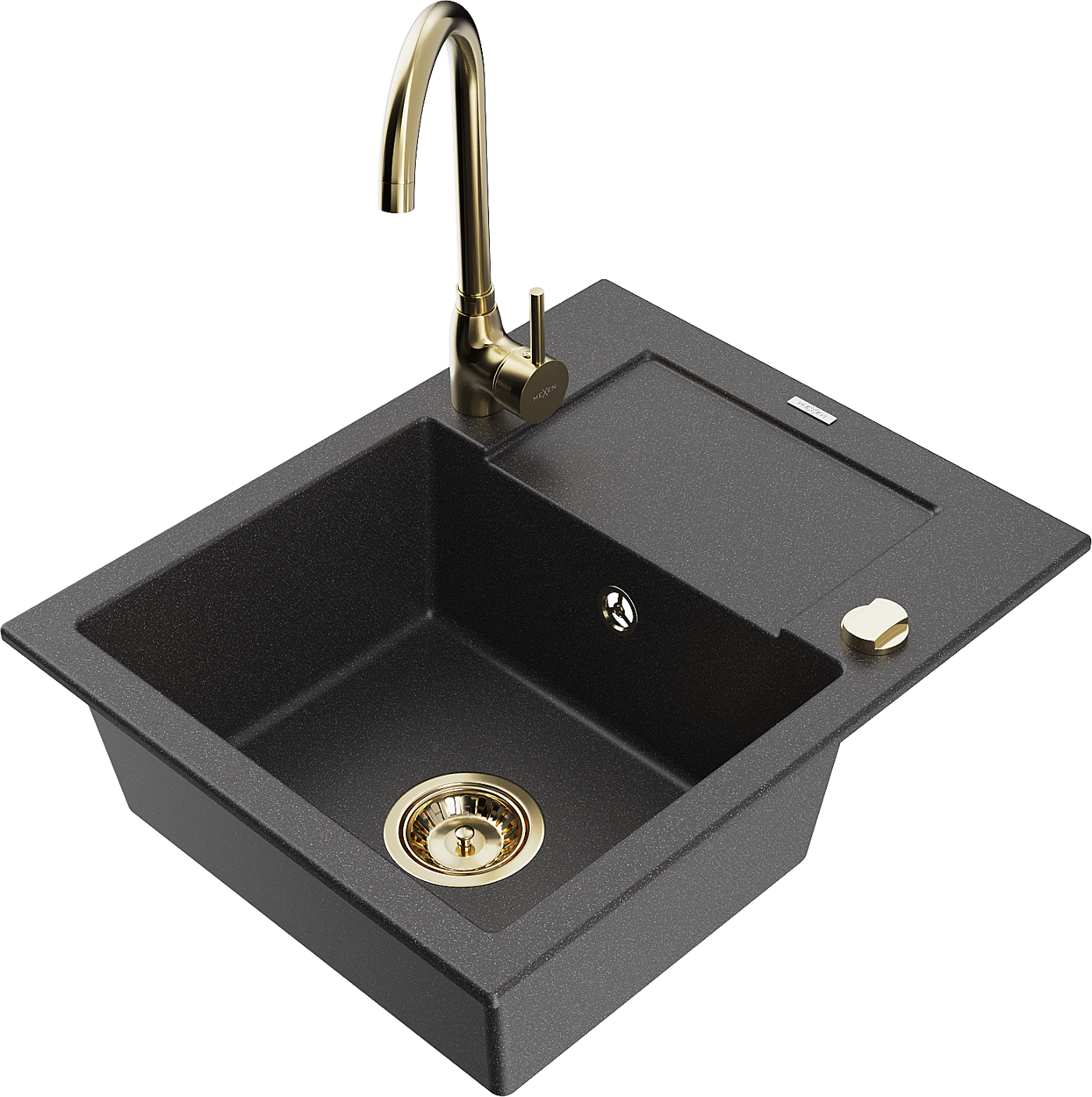 Mexen Enzo granitový drez 1-komorový s odkvapkávačom a kuchynskou batériou Telma, čierny bodkovaný - 6506-76-670200-50